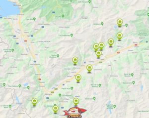 Jolie carte au musée valaisan des bisses qui montre bien la densité des bisses sur les pentes de la vallée du Rhône qui me sont pas alimentées en eau naturellement en été.