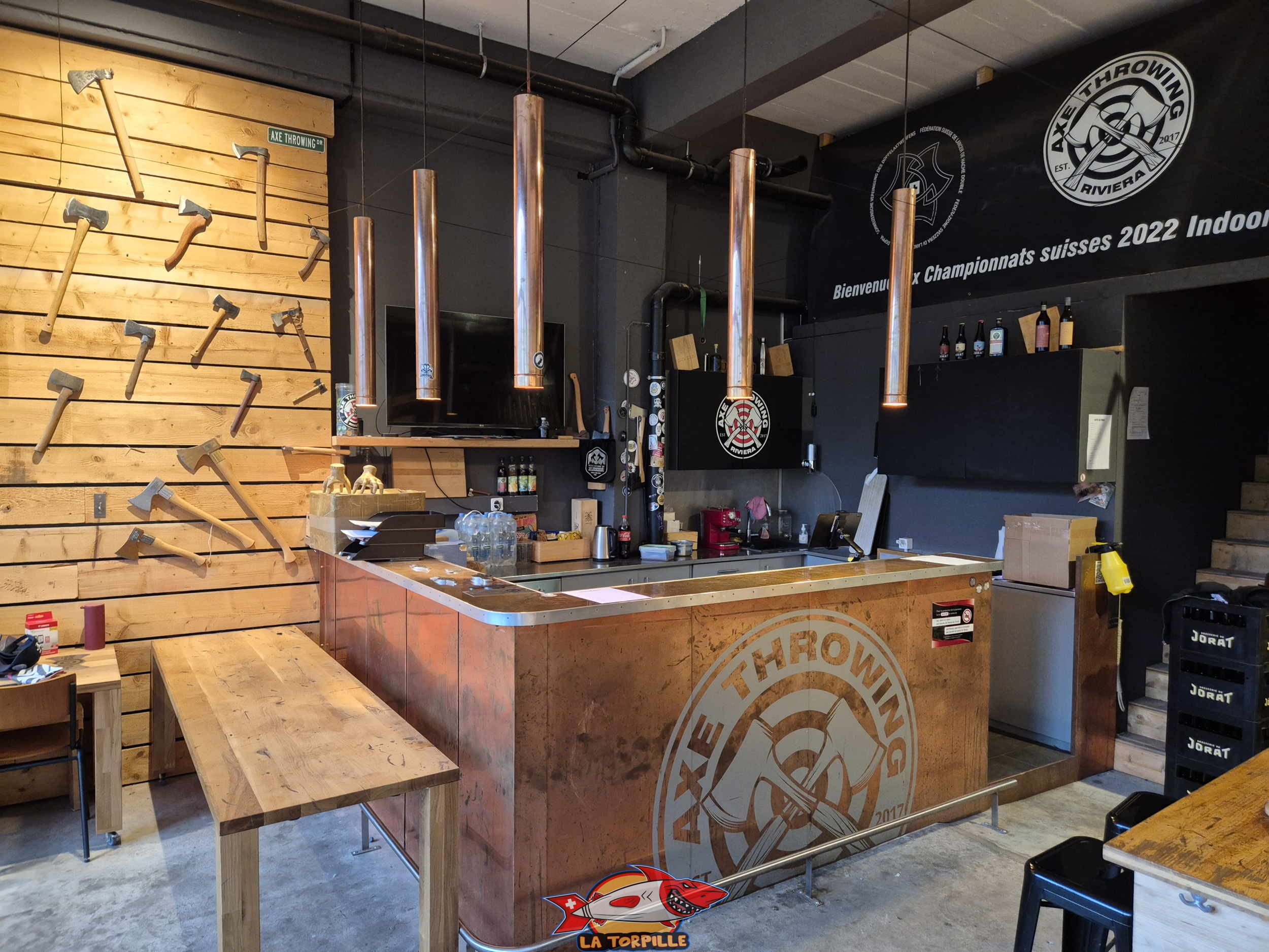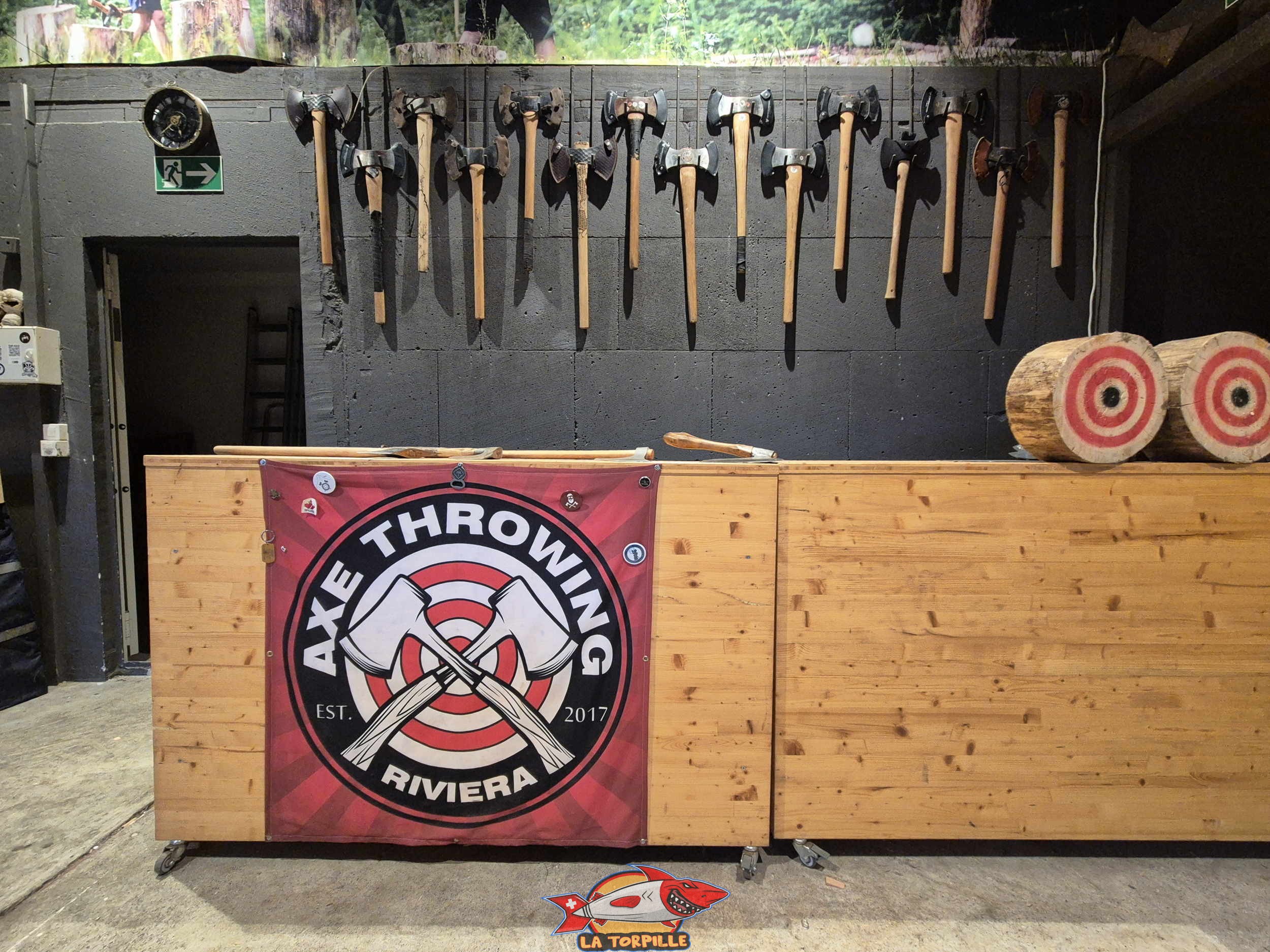 Axe Throwing Riviera est un site de lancer de hache en extérieur et intérieur dans les hauts de Vevey, à Corsier, dans le canton de Vaud. Crée en 2017, c’est le plus ancien club de lancer de hache de Suisse romande. Il trouve à proximité du musée sur Charlie Chaplin.