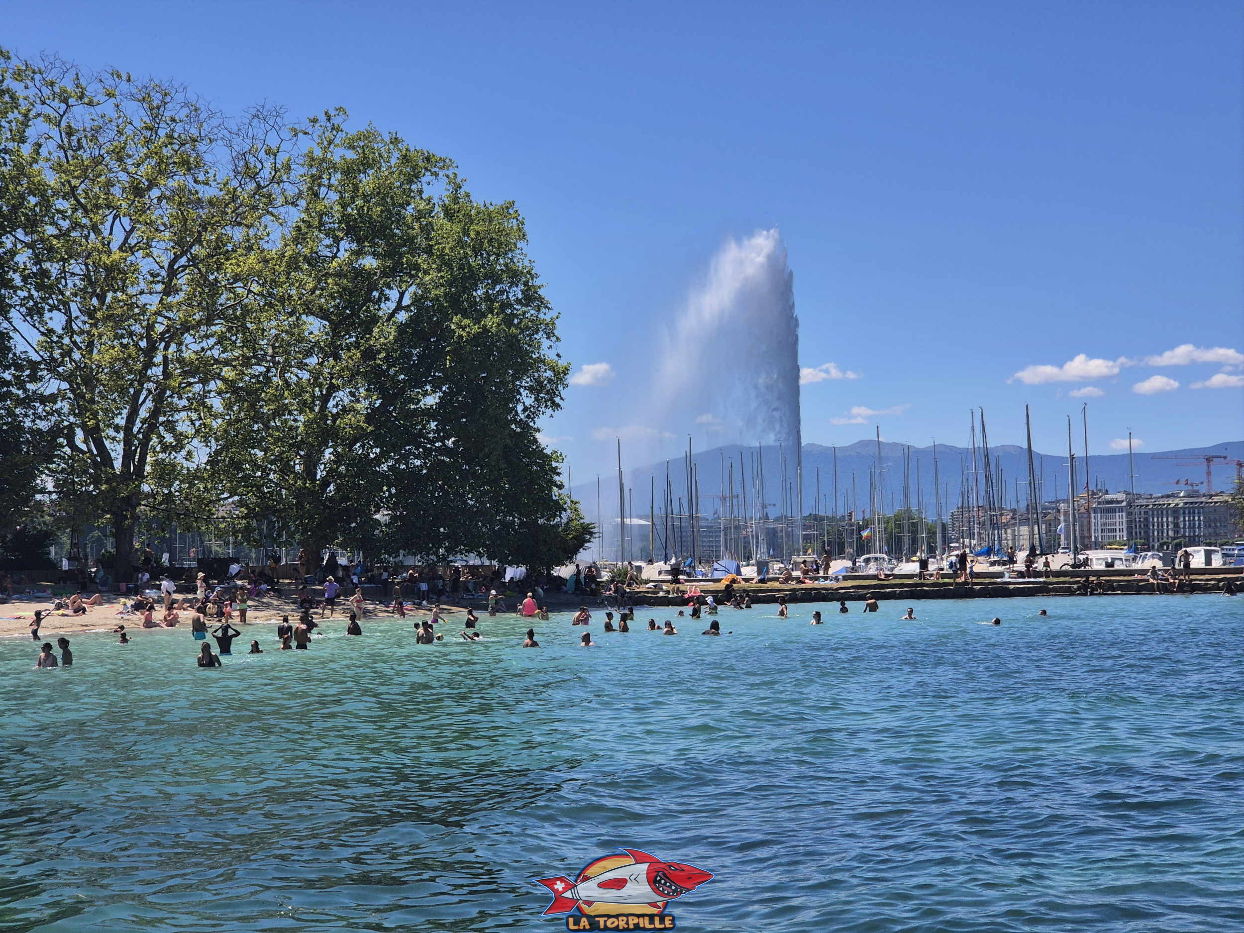 La zone de baignade de Baby-Plage depuis le débarcadère des Eaux-Vives.