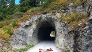 Un des deux tunnels dans la partie terminale juste avant le couronnement du barrage en mai et en septembre.