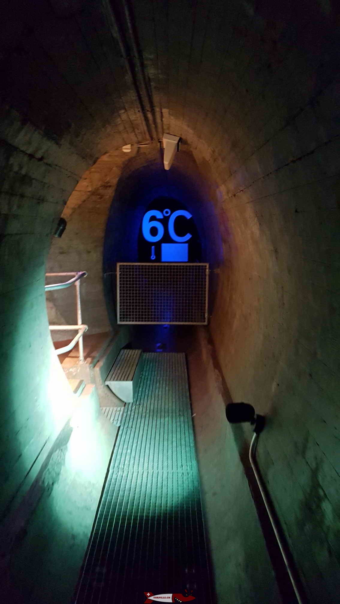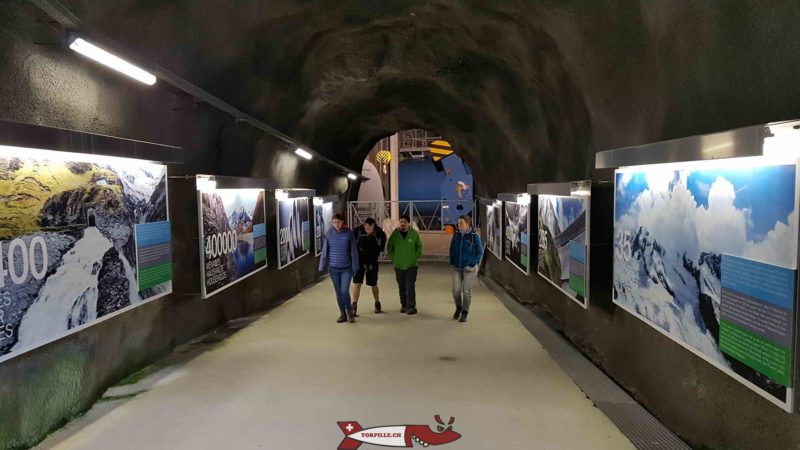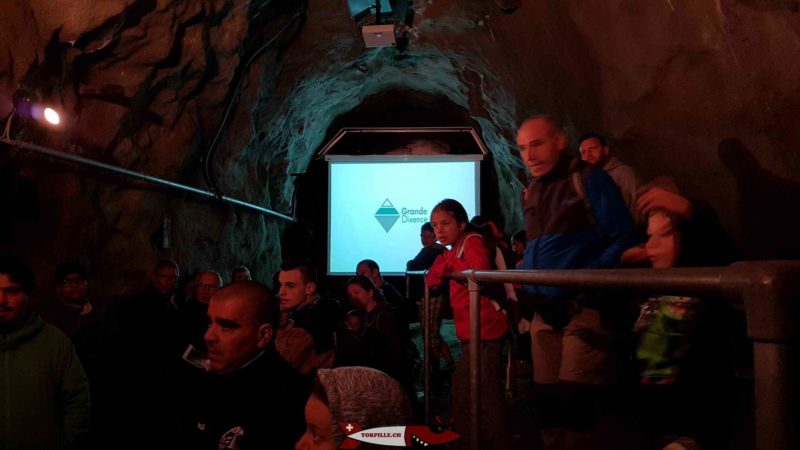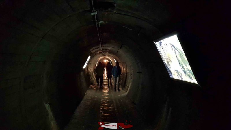 On continue à monter jusqu’à une galerie souterraine permettant de voir la conduite forcée menant à l’usine électrique du Bieudron avec sa vanne papillon permettant de bloquer la conduite à l’aide d’un disque pivotant. La galerie expose des panneaux d’informations sur le barrage qui sont commentés par le guide.