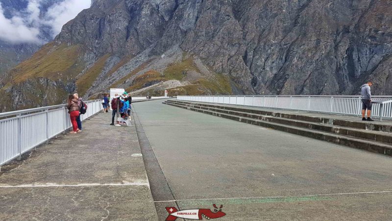 Long de 700 mètres pour une largeur de 15 mètres, le couronnement du barrage permet d’observer le lac de Dix avec les montagnes qui l’entourent et de l’autre côté le val d’Hérémance.