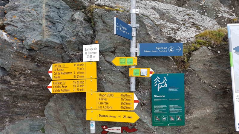 La station inférieure du téléphérique permet de rejoindre sans effort le sommet du barrage de la Grande Dixence. Voir la section barrage -> téléphérique pour plus d’informations.