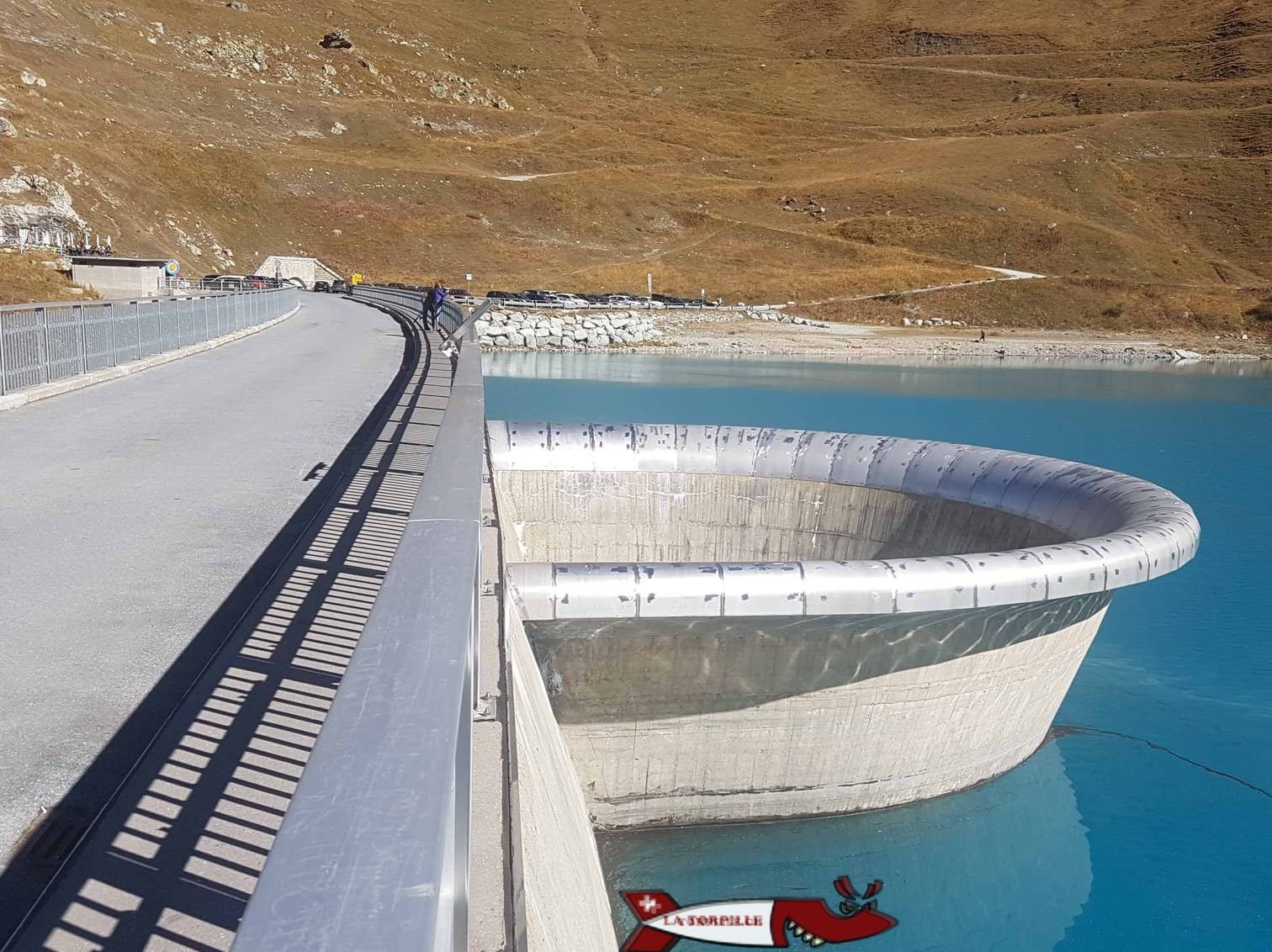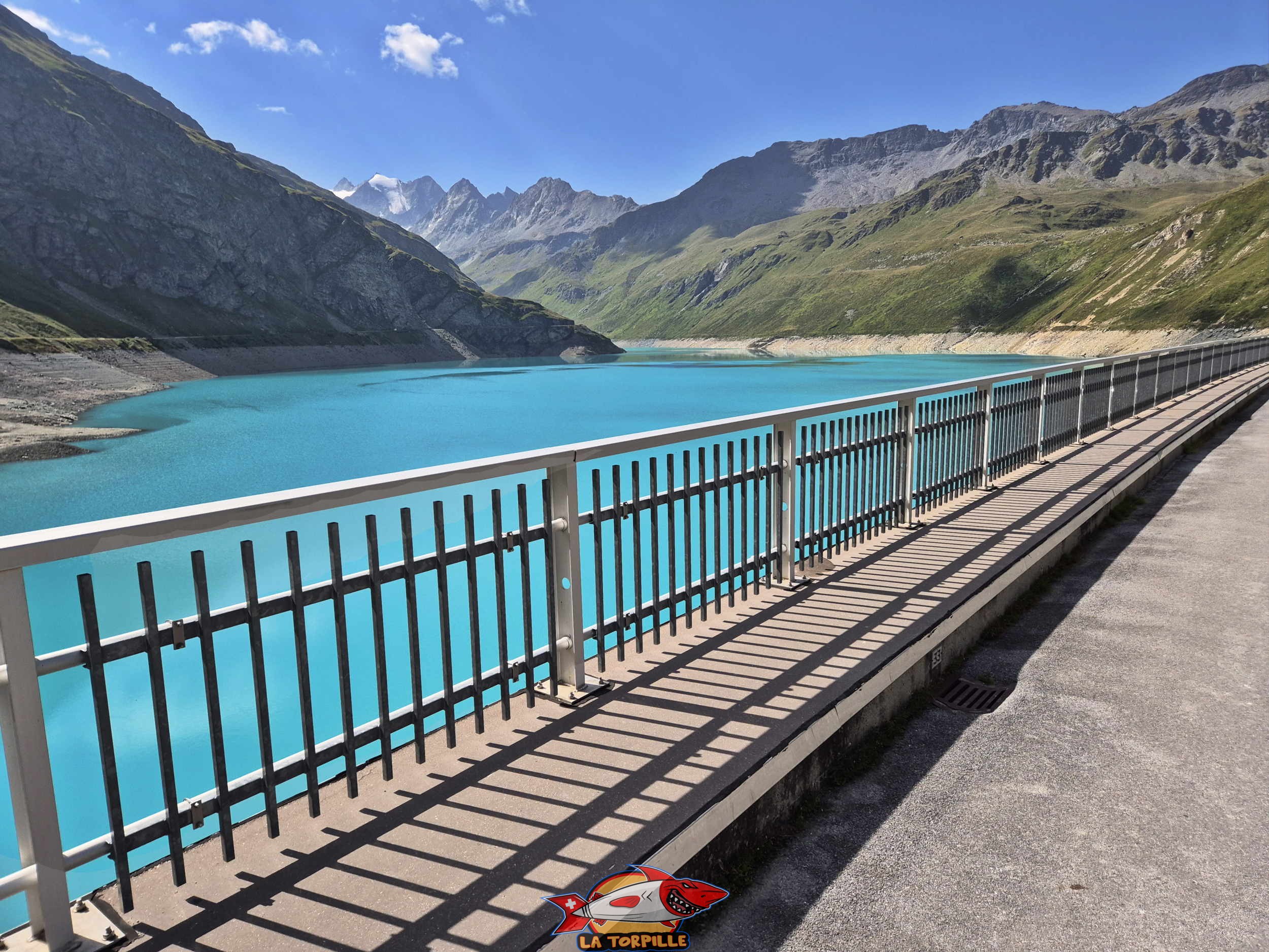 Le barrage de Moiry est un barrage de type voute construit à la fin des années 1950. C’est le 5e plus haut barrage de Suisse Romande avec ses 148 mètres de hauteur à une altitude de 2250 m. Il a la particularité d’avoir un déversoir de crue atypique en forme de tulipe et surtout un lac d’une magnifique couleur d’eau bleu turquoise.
