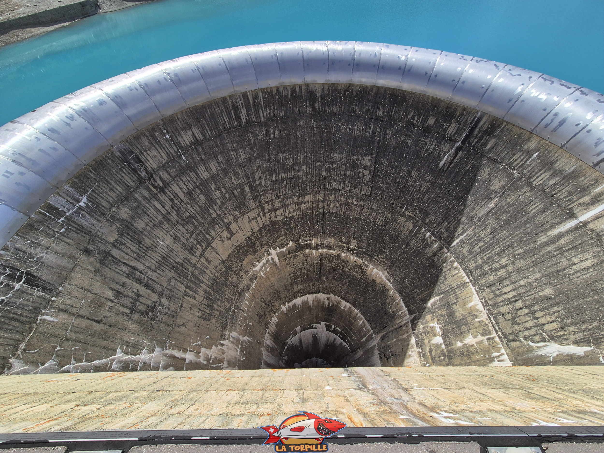 L’étonnant déversoir de crues en forme de tulipe.