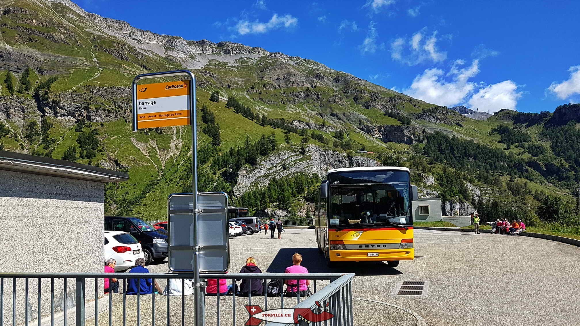 L’arrêt de bus juste à côté du barrage de Tseuzier.