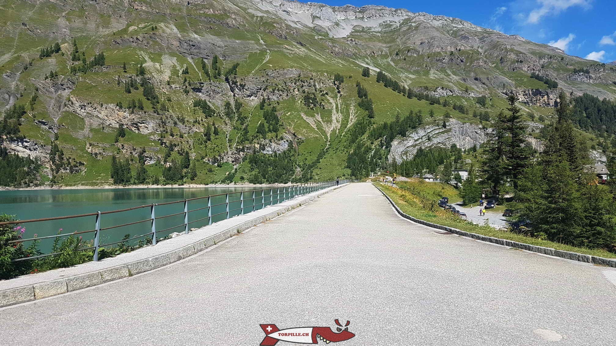 Le parking le long de route, juste avant d’arriver au barrage.