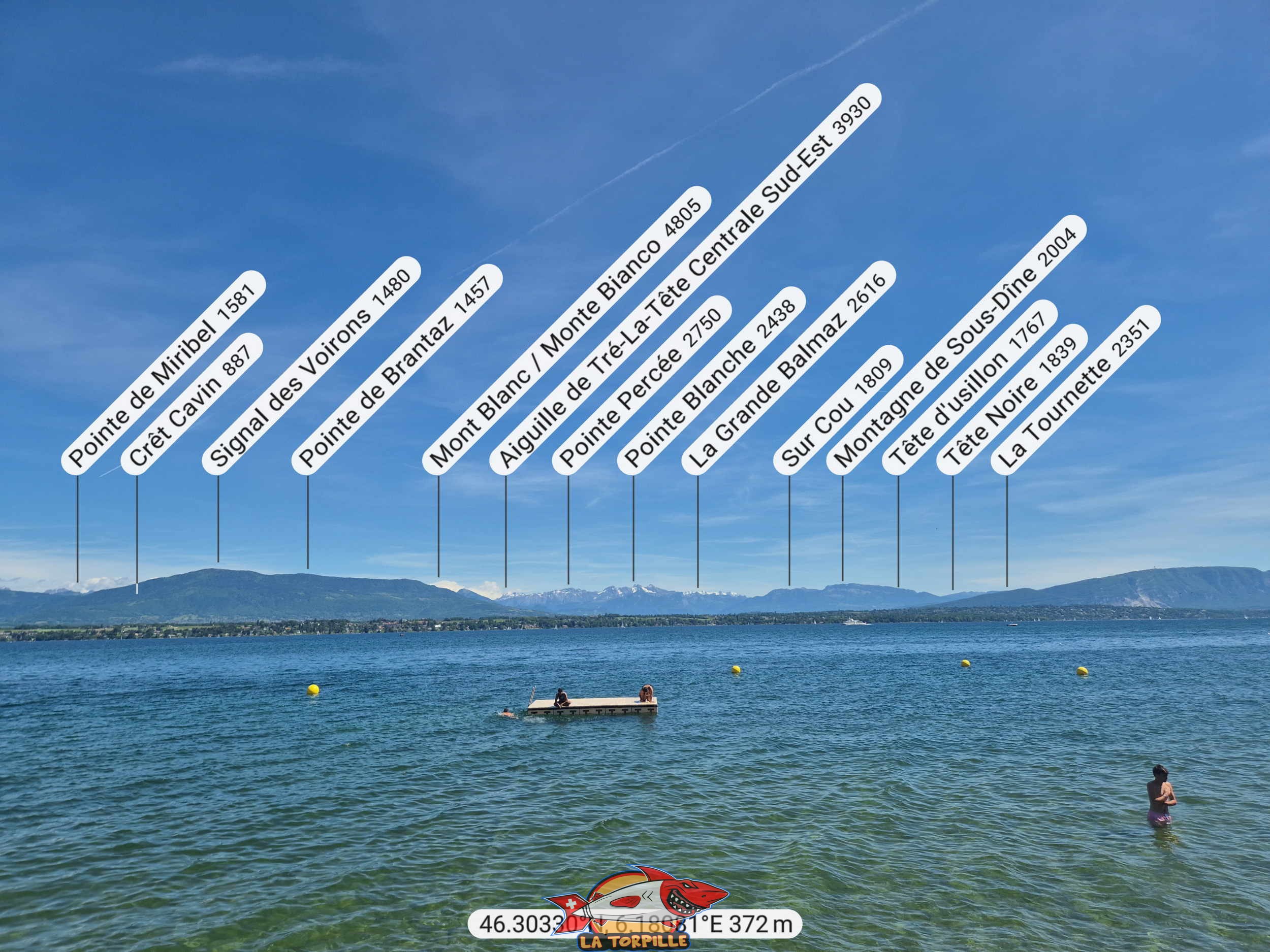 La vue direction Sud-Est depuis la plage de Mies. Le Mont Blanc.