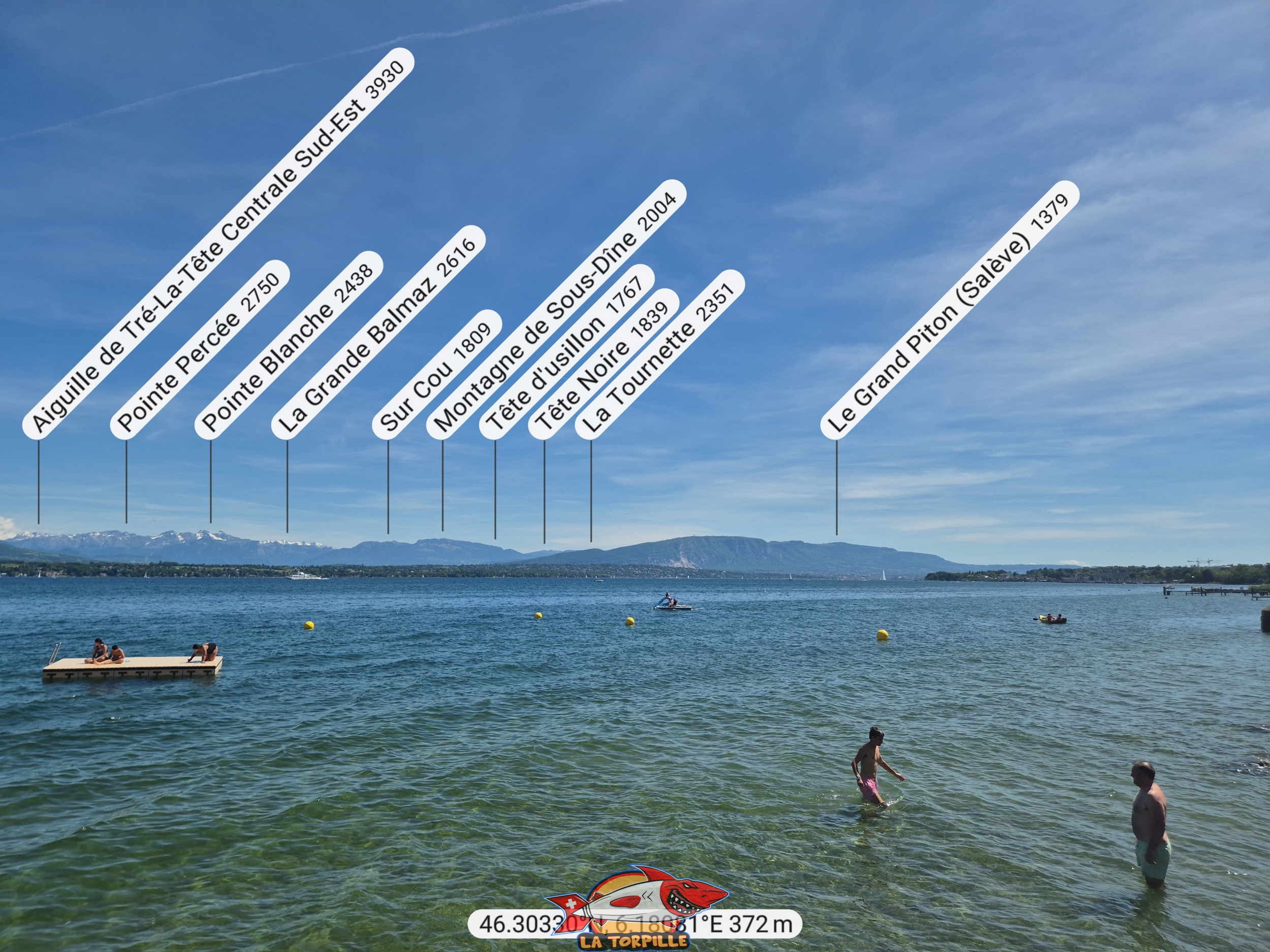 La vue direction Sud depuis la plage de Mies. Le Salève.