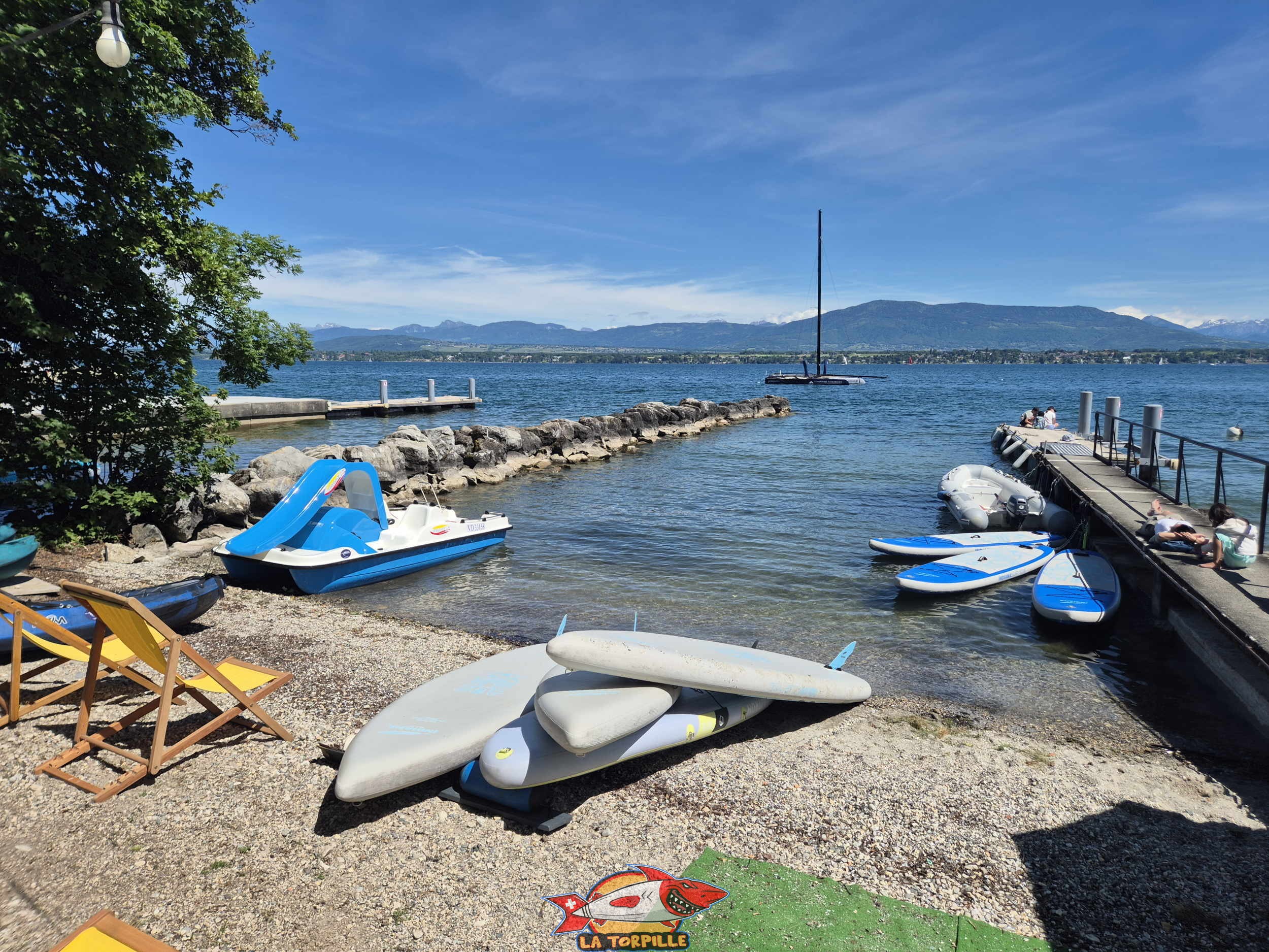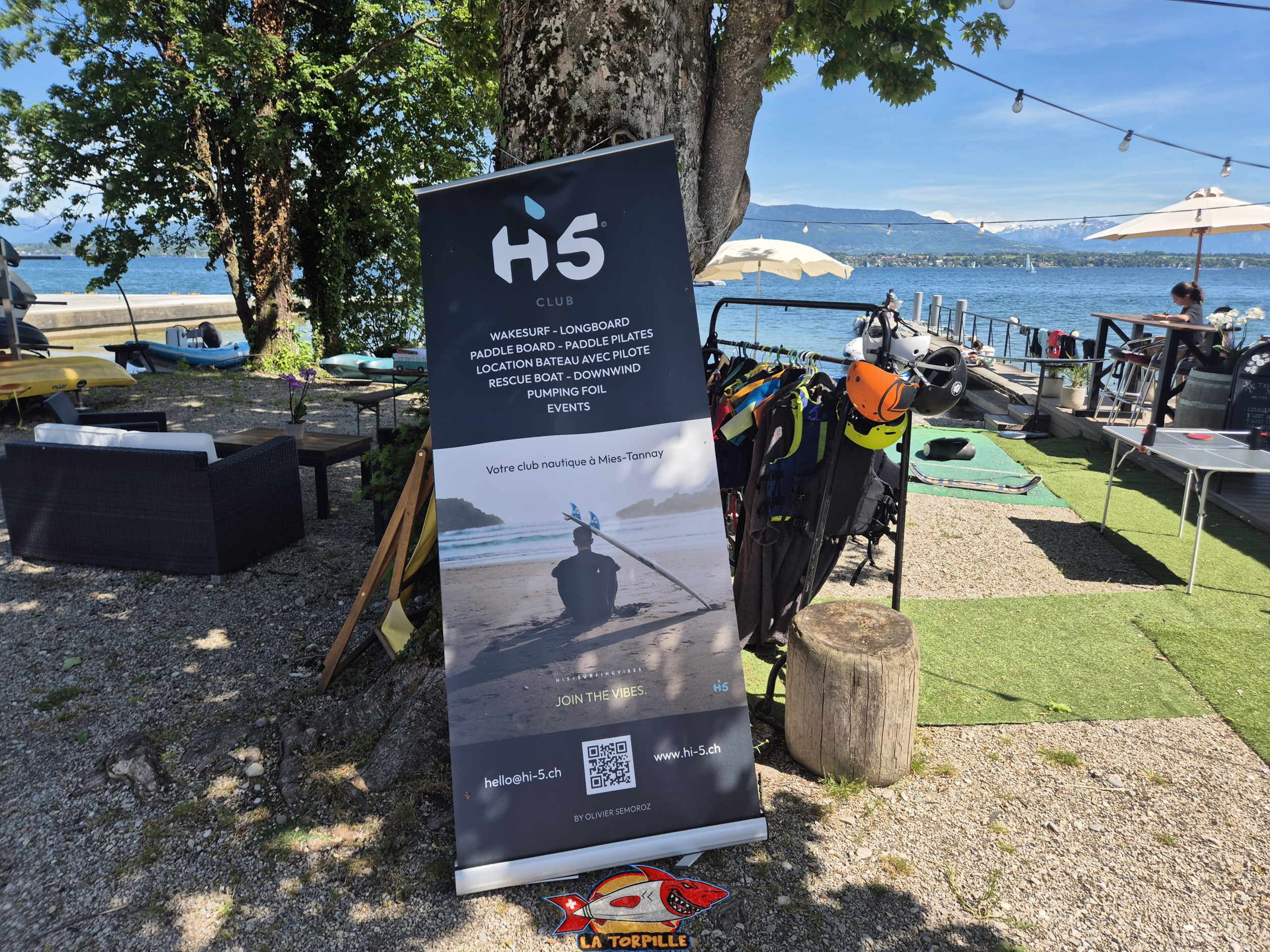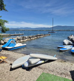 La base nautique Hi5 loue des embarcations aquatiques, à la plage de Mies, au bord du Léman,