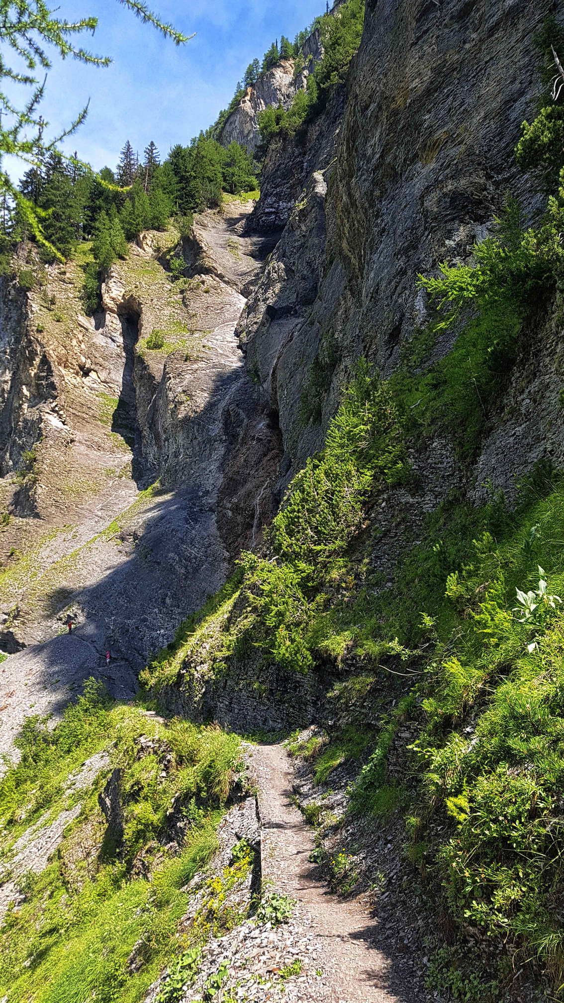 Le chemin bifurque direction nord-est jusqu’à la prise d’eau de l’Ertentse en longeant les parois rocheuse du Mont Lachaux.