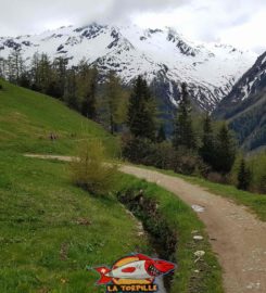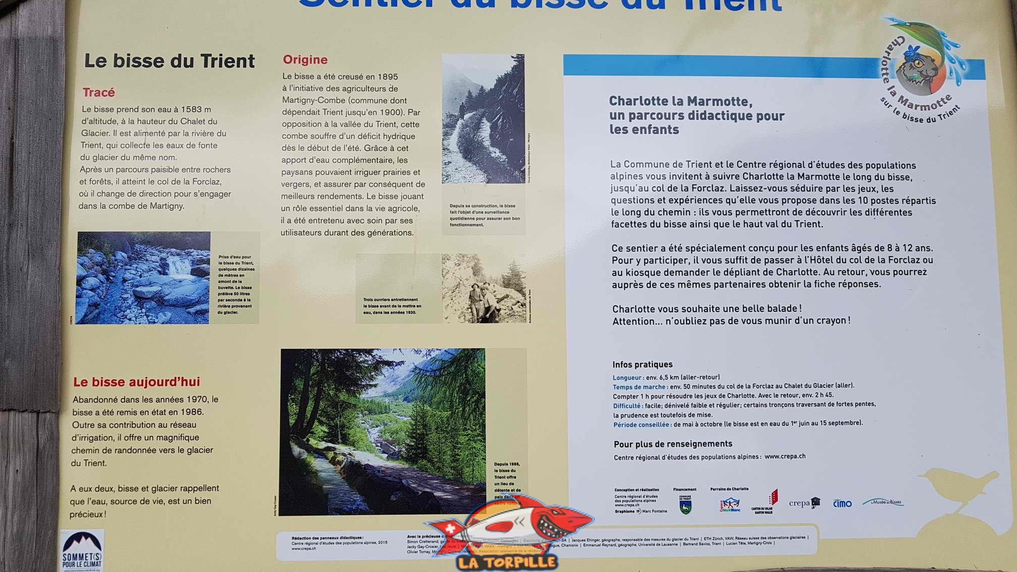 Le parcours de la balade débute au col de la Forclaz et suit le bisse jusqu’à la buvette du glacier du Trient. Le retour se fait par le même chemin