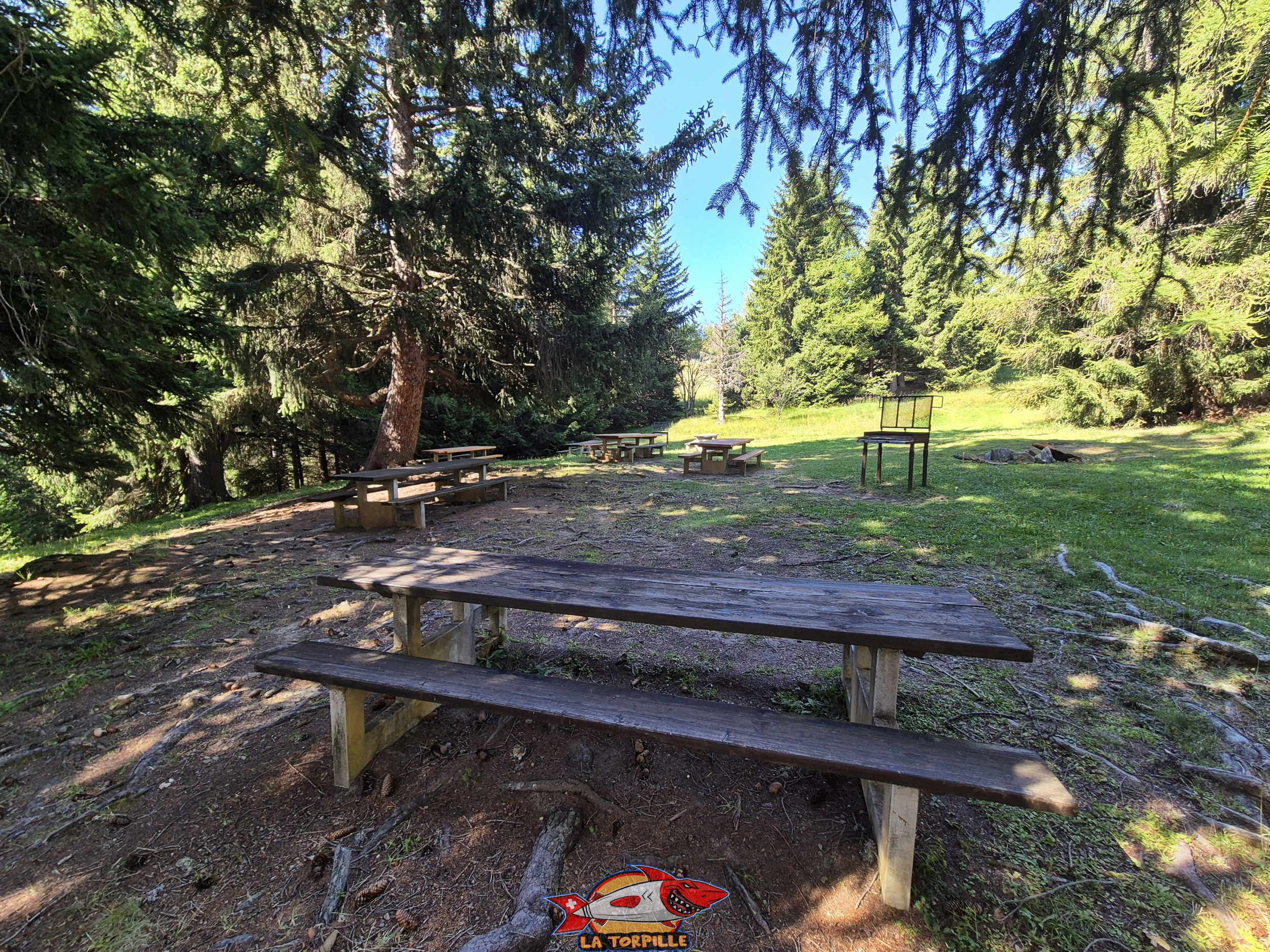 La très belle place de pique-nique avec des grills à la Crêta d’Asse, tout près de la voiture.