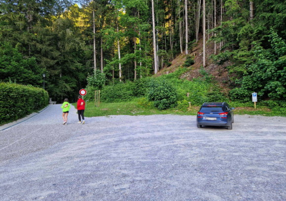 Une route en gravier dans la forêt d’un peu plus de 100 mètres mène à la grotte et aux passerelles.