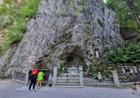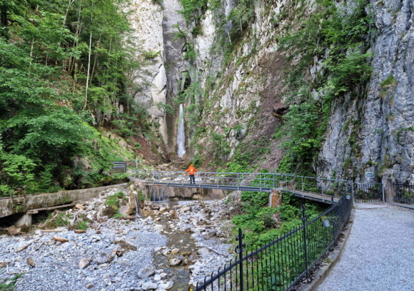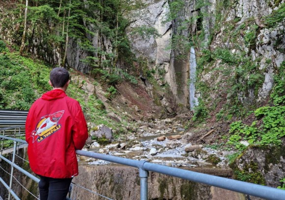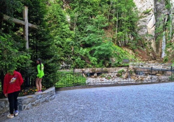 En face de la grotte se trouve une grande place depuis laquelle on peut voir la cascade de Grandvillard.
