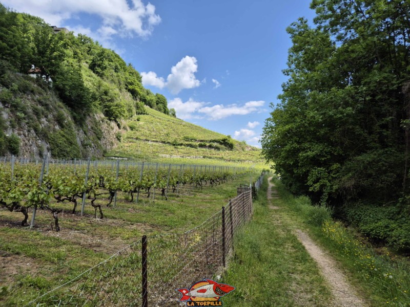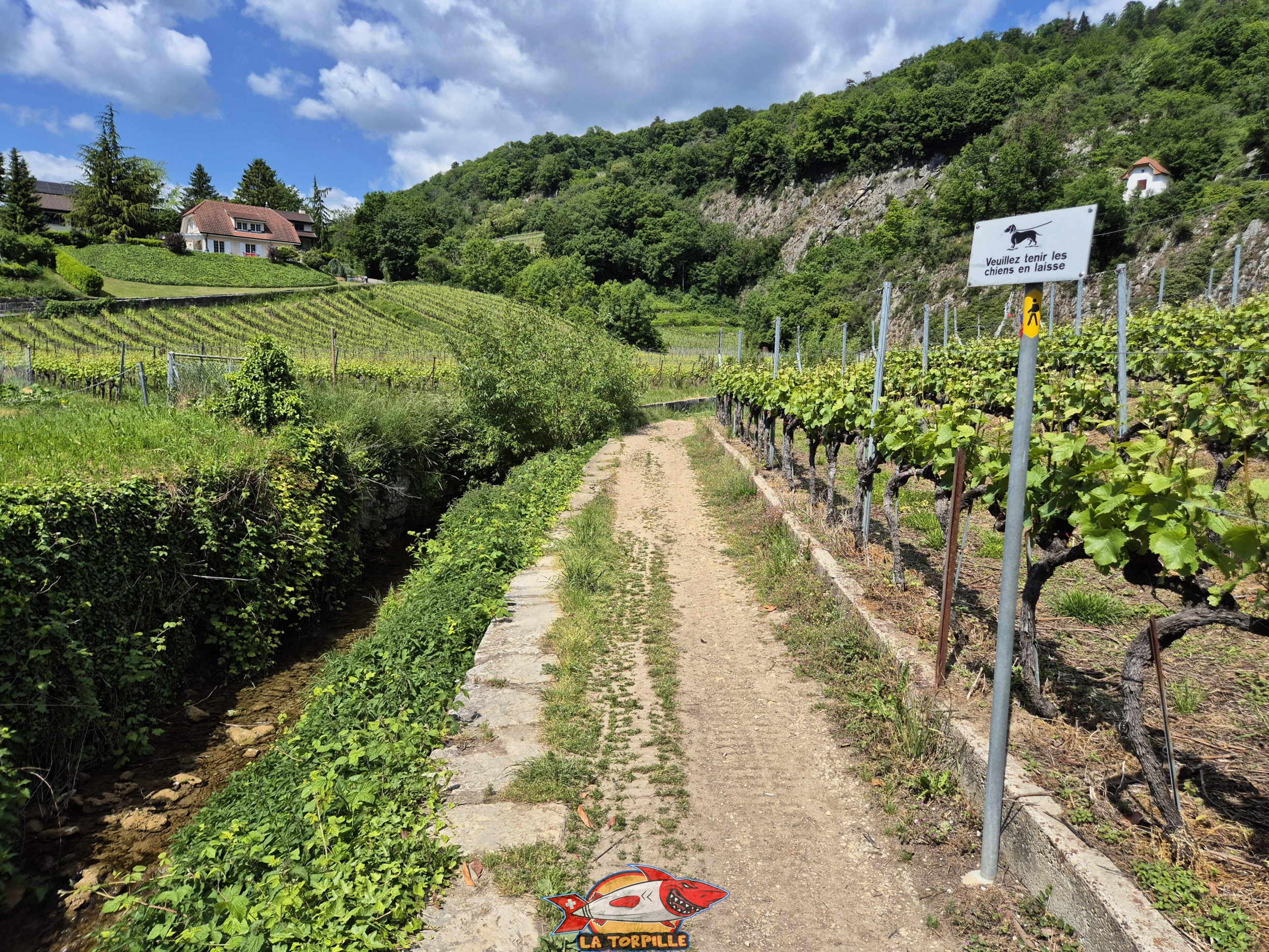 La remontée du ruisseau de Vaux à travers le vignoble.