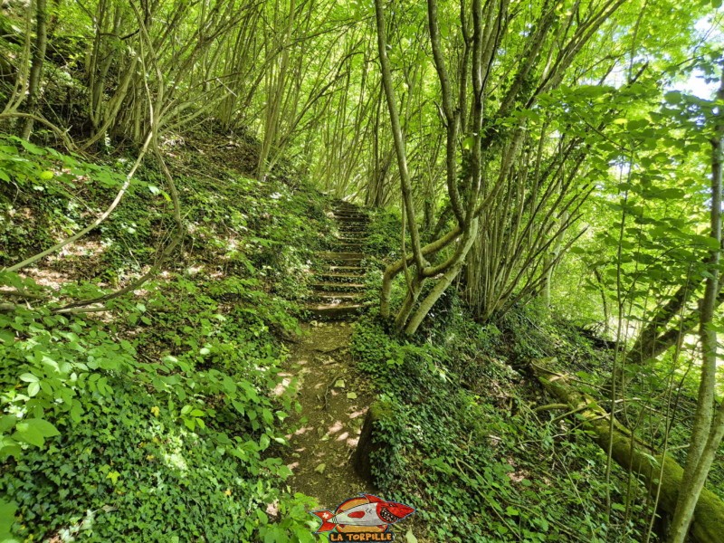 Le chemin qui monte, en forte pente, la Combe du Pilouvi parcours quatre cascades formée par le ruisseau de Vaux dont le débit varie fortement en fonction de la pluviométrie.