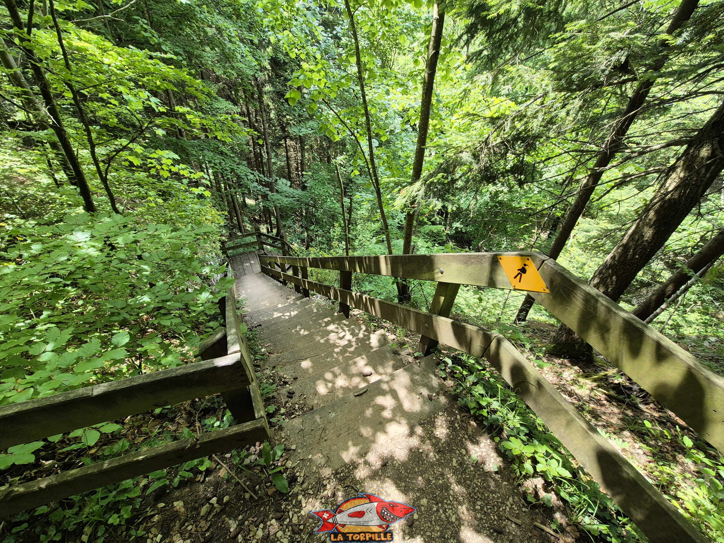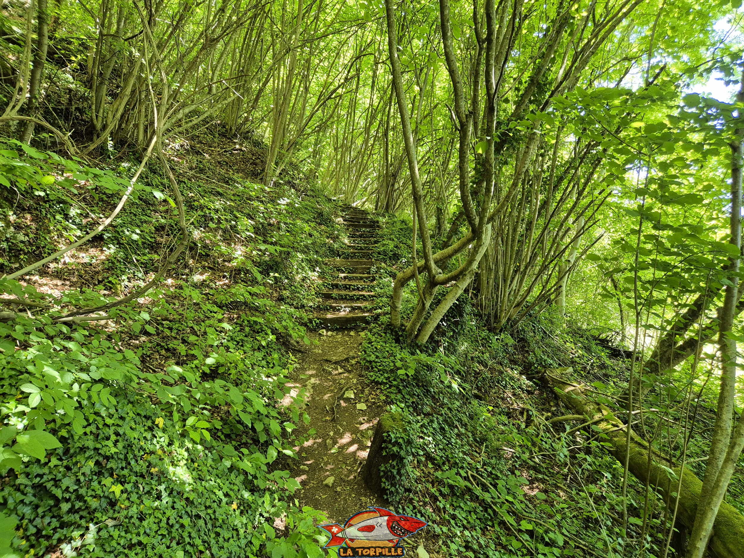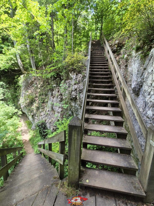 Les deux escaliers qui mènent au sommet de la Combe du Pilouvi.