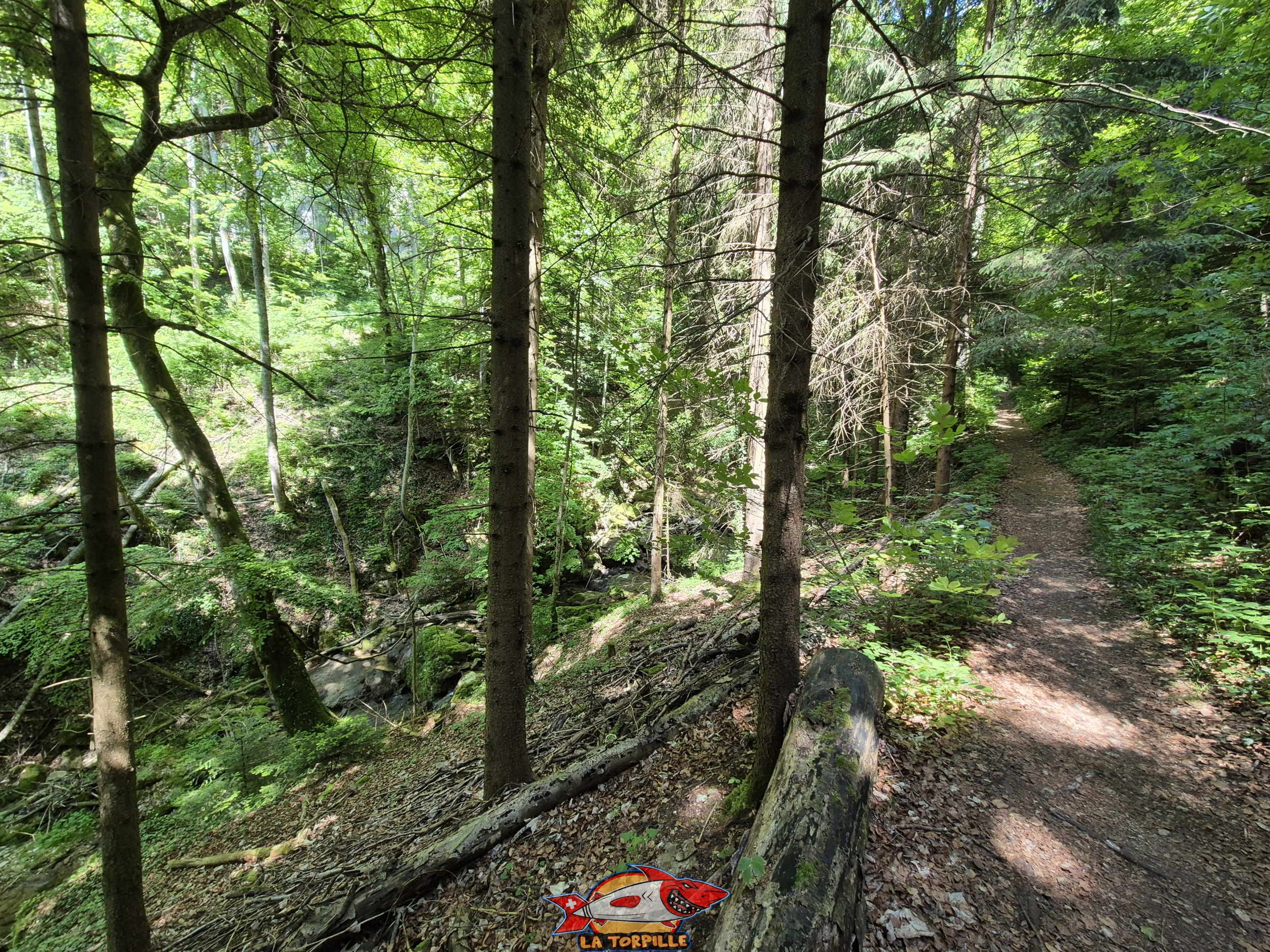 Le chemin le long du ruisseau de Vaux dans la Combe du Pilouvi. Photo : wandern-mit-freuden.ch