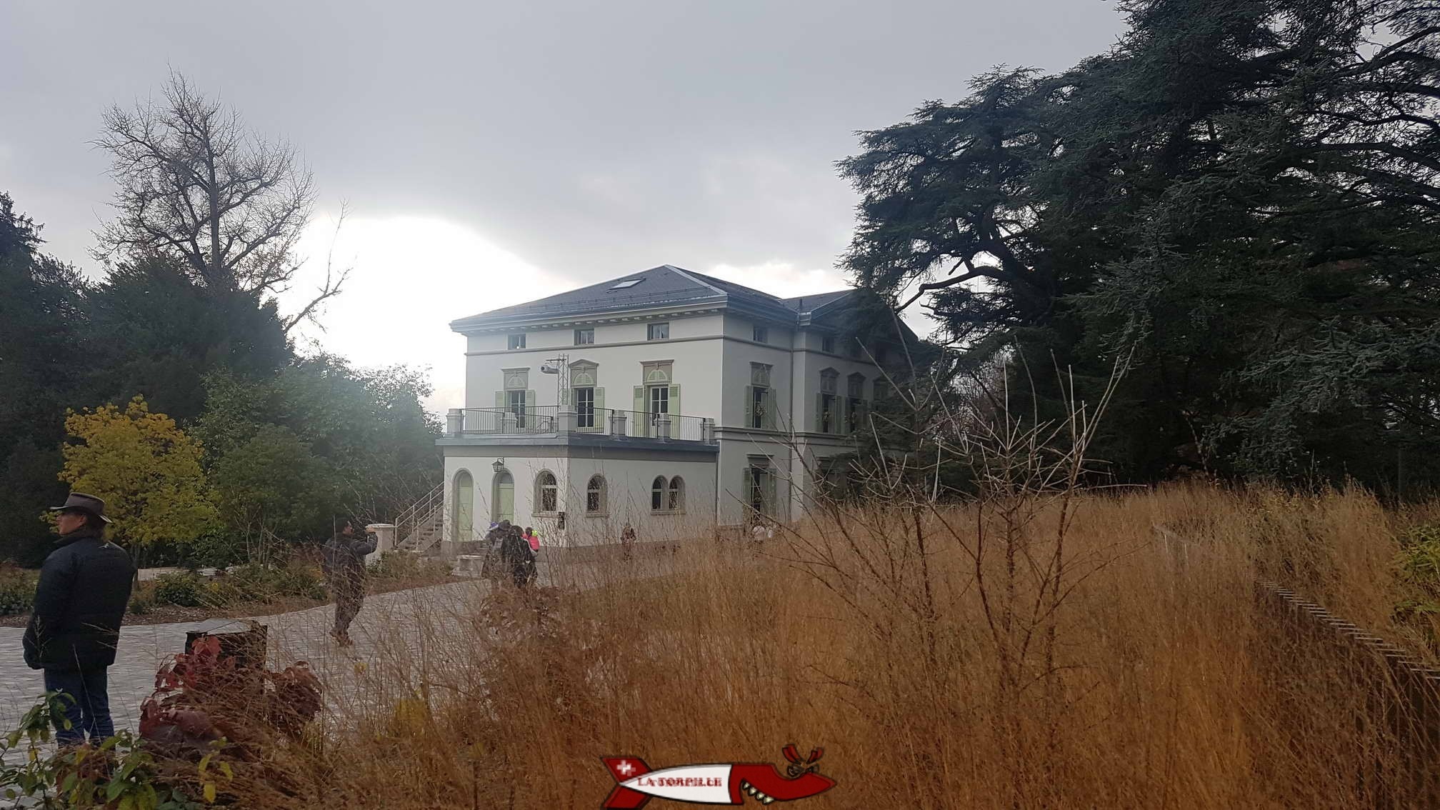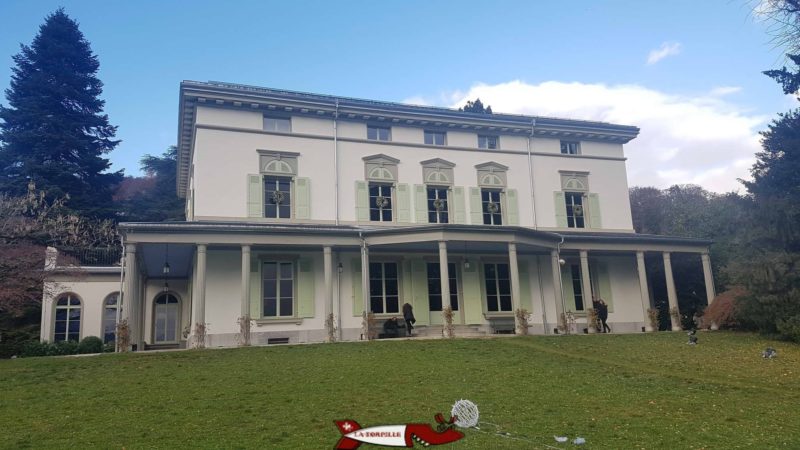 Le parc, dans lequel se trouvent des nombreuses essences d’arbres, parfois centenaires, permet de profiter de la vue sur le (lac) Léman et les Alpes.