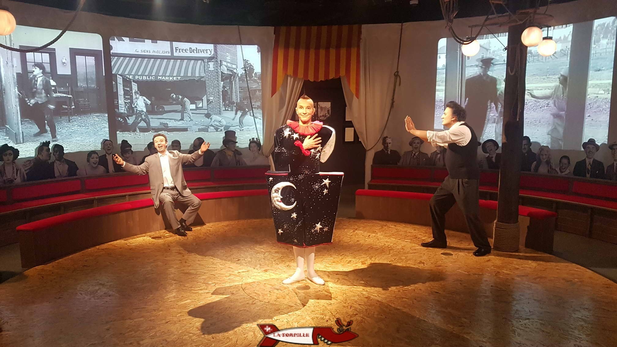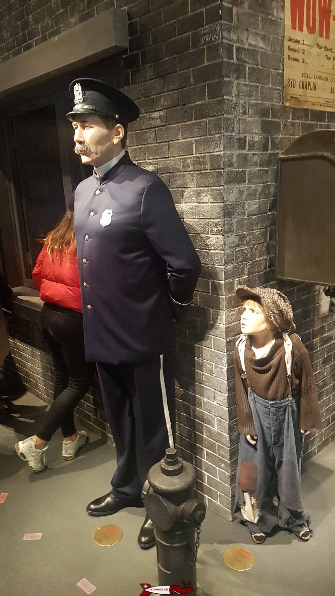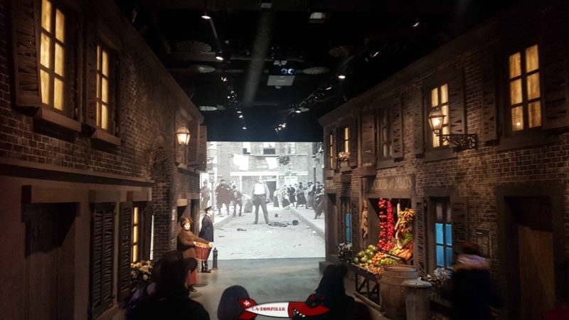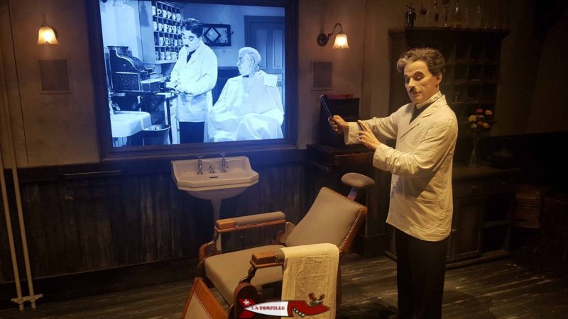 Le long de Hollywood Boulevard, le visiteur traverse des décors spécifiques des films marquants de Chaplin.