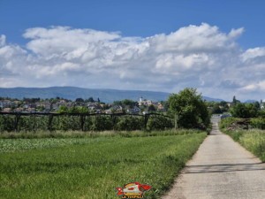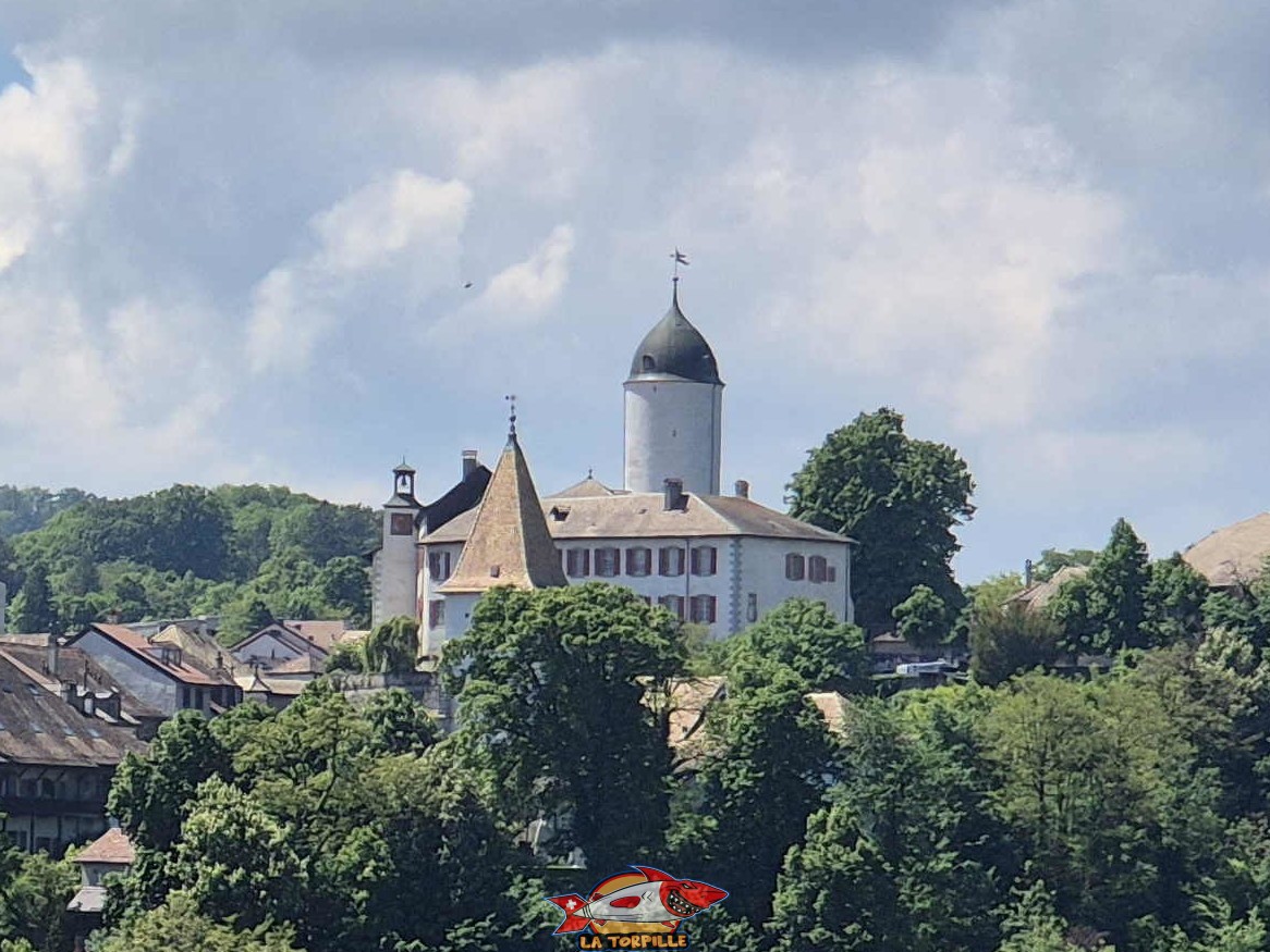 La vieille ville d’Aubonne et le château sur la droite depuis la route entre Aubonne et St-Livres.