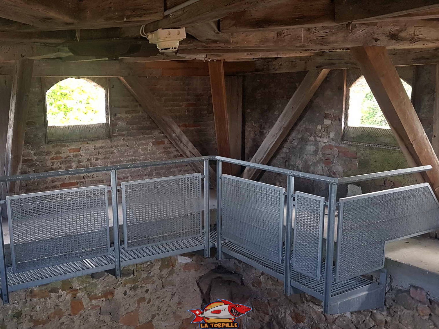 Les combles des tours et le chemin de ronde entre les tours ne sont plus visibles librement à la visite.