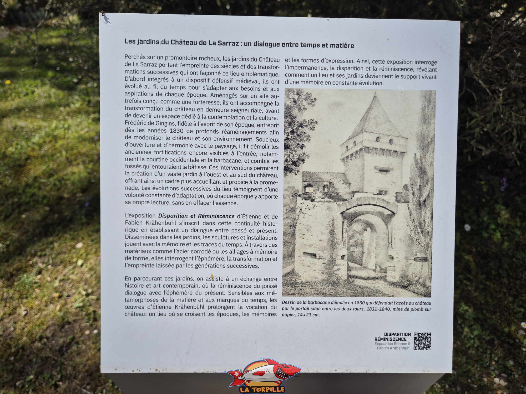 Une image qui montre la barbacane détruite en 1830. Il s’agissait d’un ouvrage qui défendait l’entrée principale du château. Le meilleur exemple de barbacane encore existante en Suisse romande se trouve au château de Chenaux, à Estavayer-le-Lac. Image : Château de La Sarraz