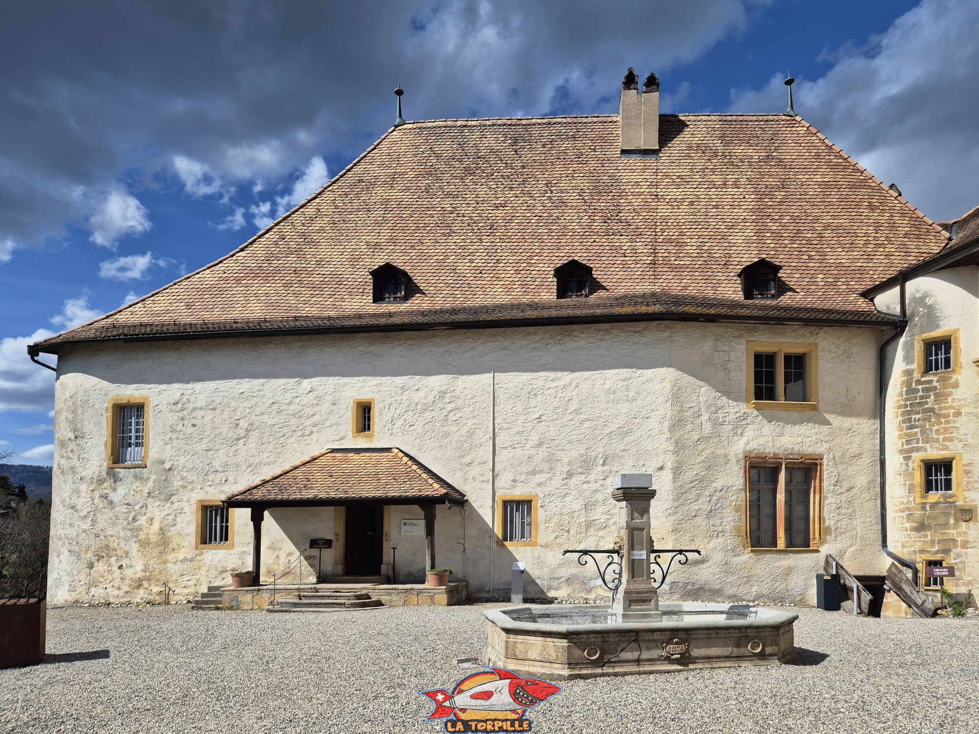 En train, il faut se rendre jusqu’à la gare de La Sarraz, desservie par les lignes régionales depuis Lausanne ou Yverdon-les-Bains. Depuis la gare, le château se trouve à environ 10 à 15 minutes à pied, dans une montée douce à travers le bourg, ce qui en fait une promenade agréable.