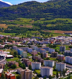 La vue direction sud-est. Le stade de football de Tourbillon et, au milieu, à gauche, l’hôpital de Sion.