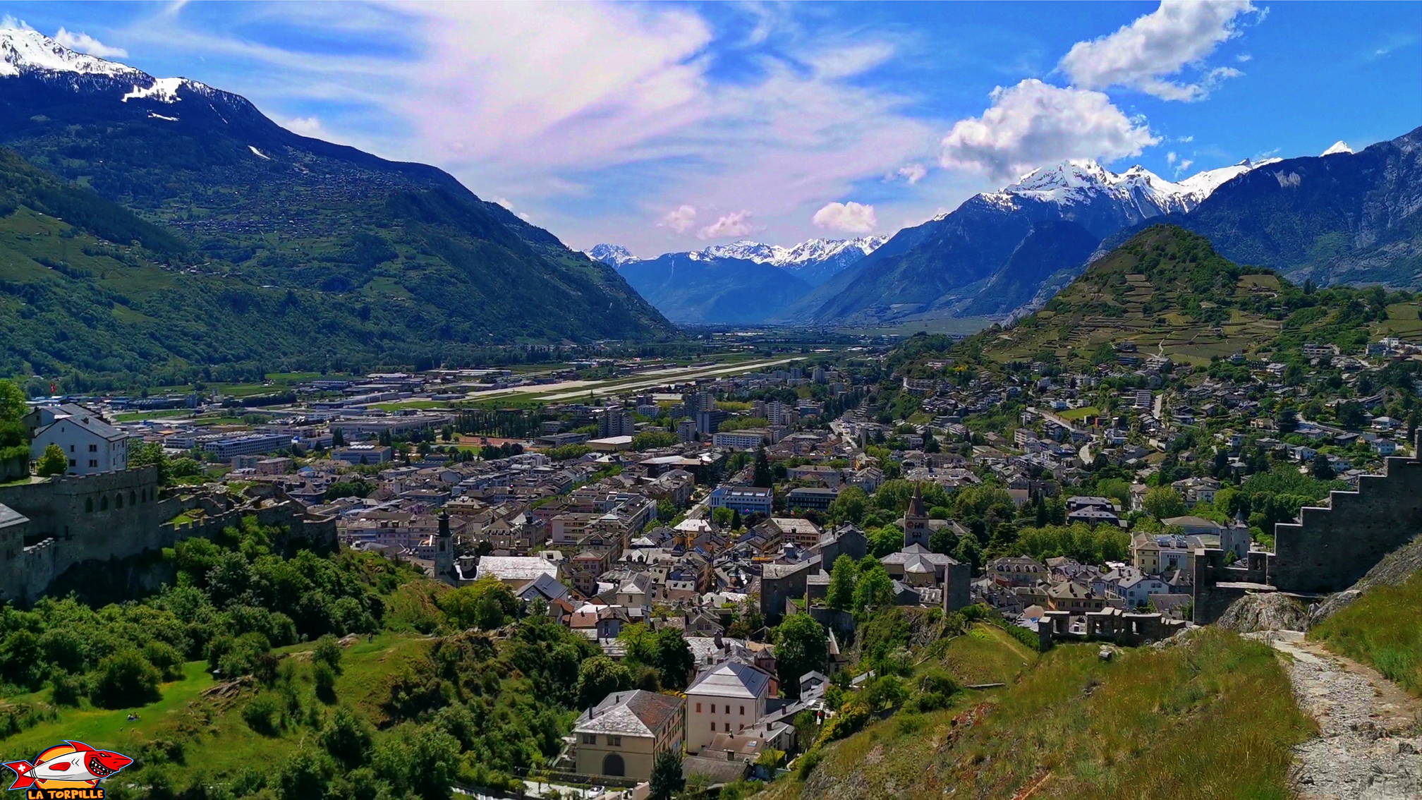 Le château depuis le sud-ouest avec la vallée du Rhône en direction du Haut-Valais. Photo : Facebook Nicolas Rey.