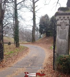 Le portail d’entrée dans le domaine du château se trouve au nord de celui-ci.