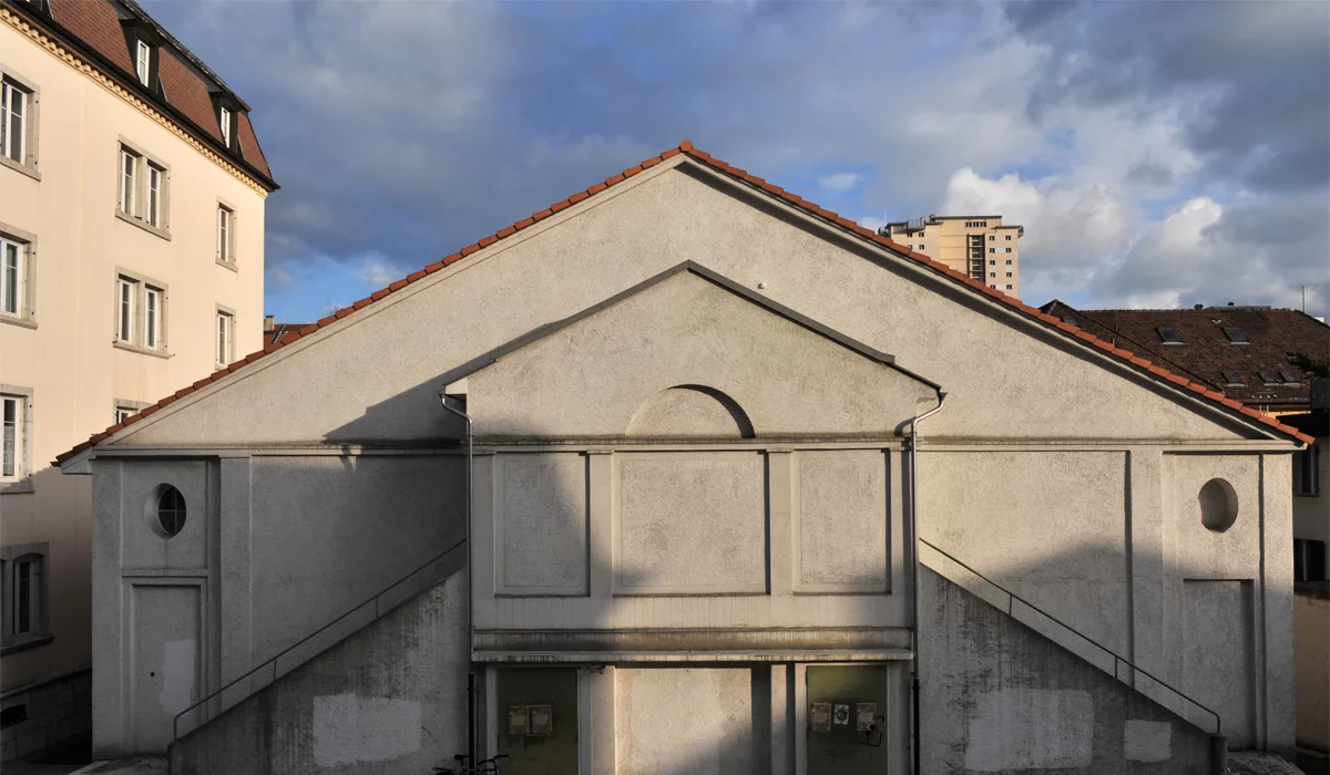 L’ancienne façade arrière du cinéma Scala construit en 1916 par le Corbusier et seule restante de l’incendie de 1971. Photo : fondationlecorbusier.fr