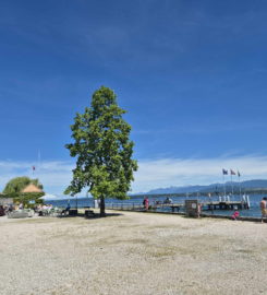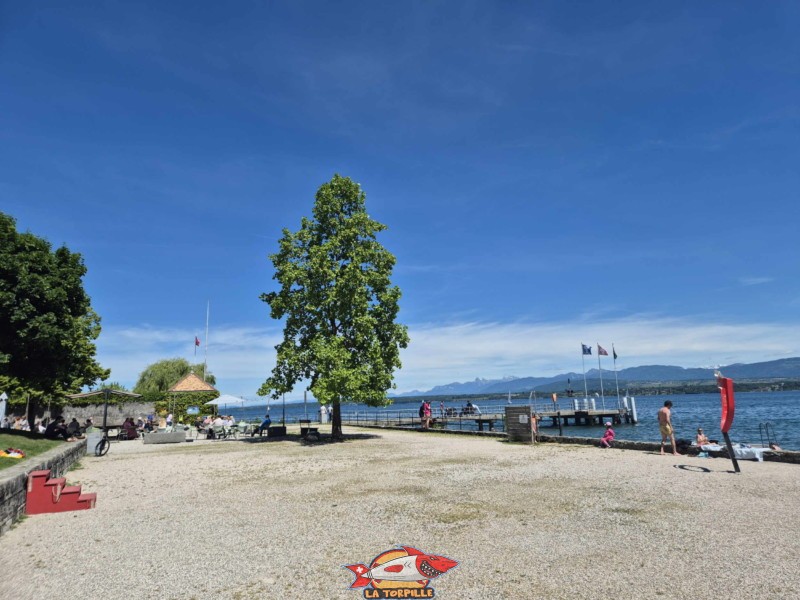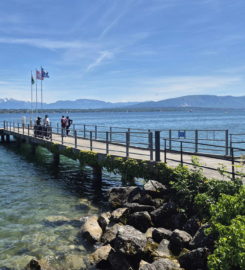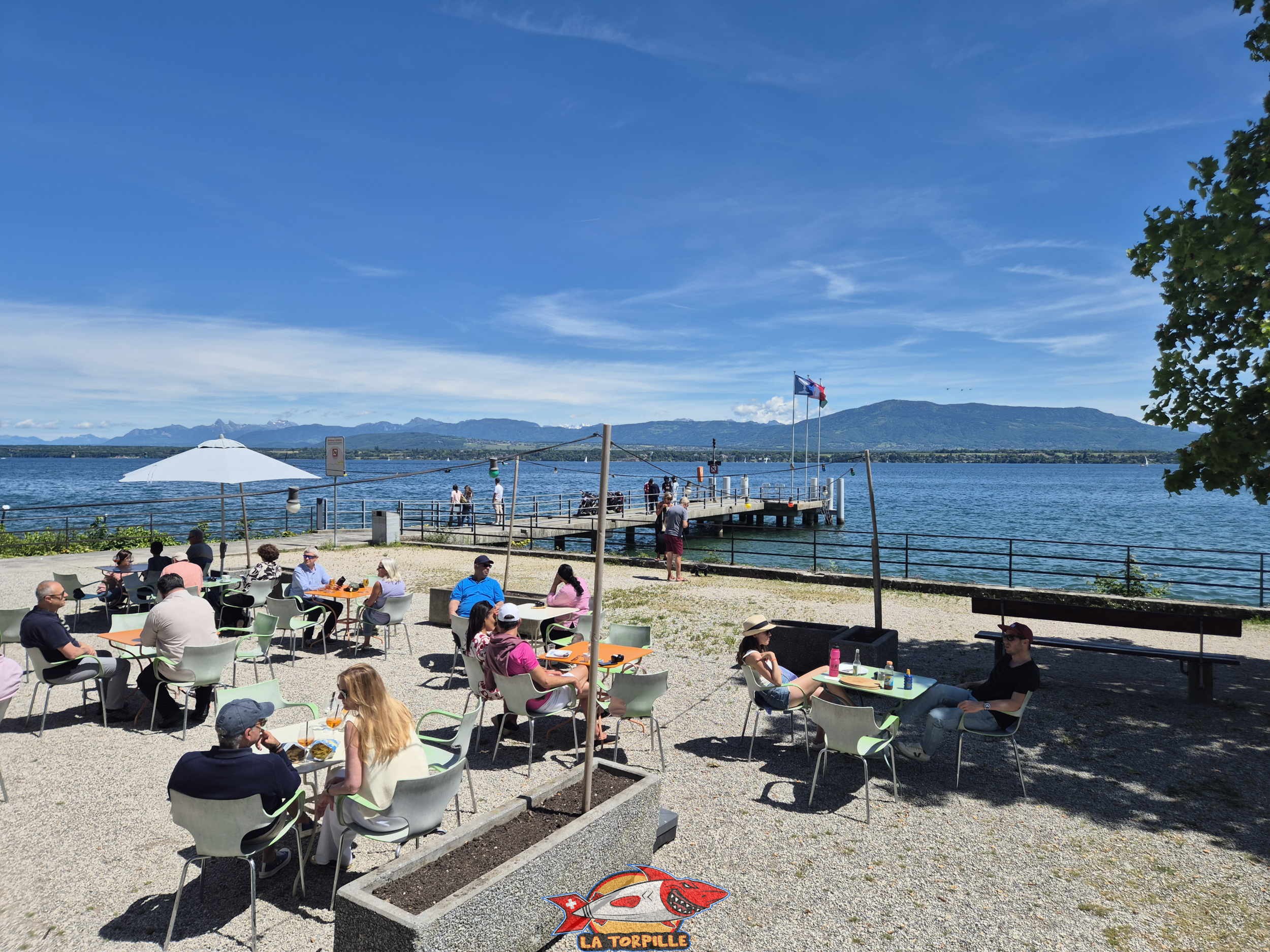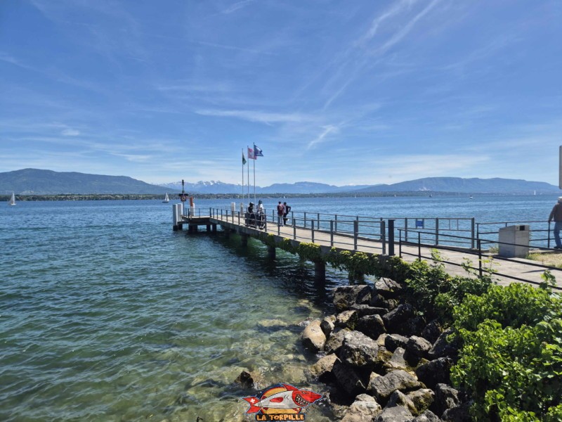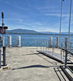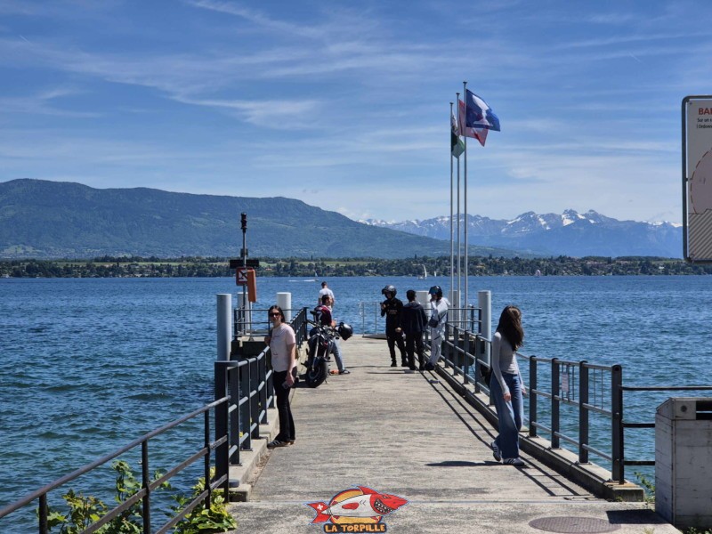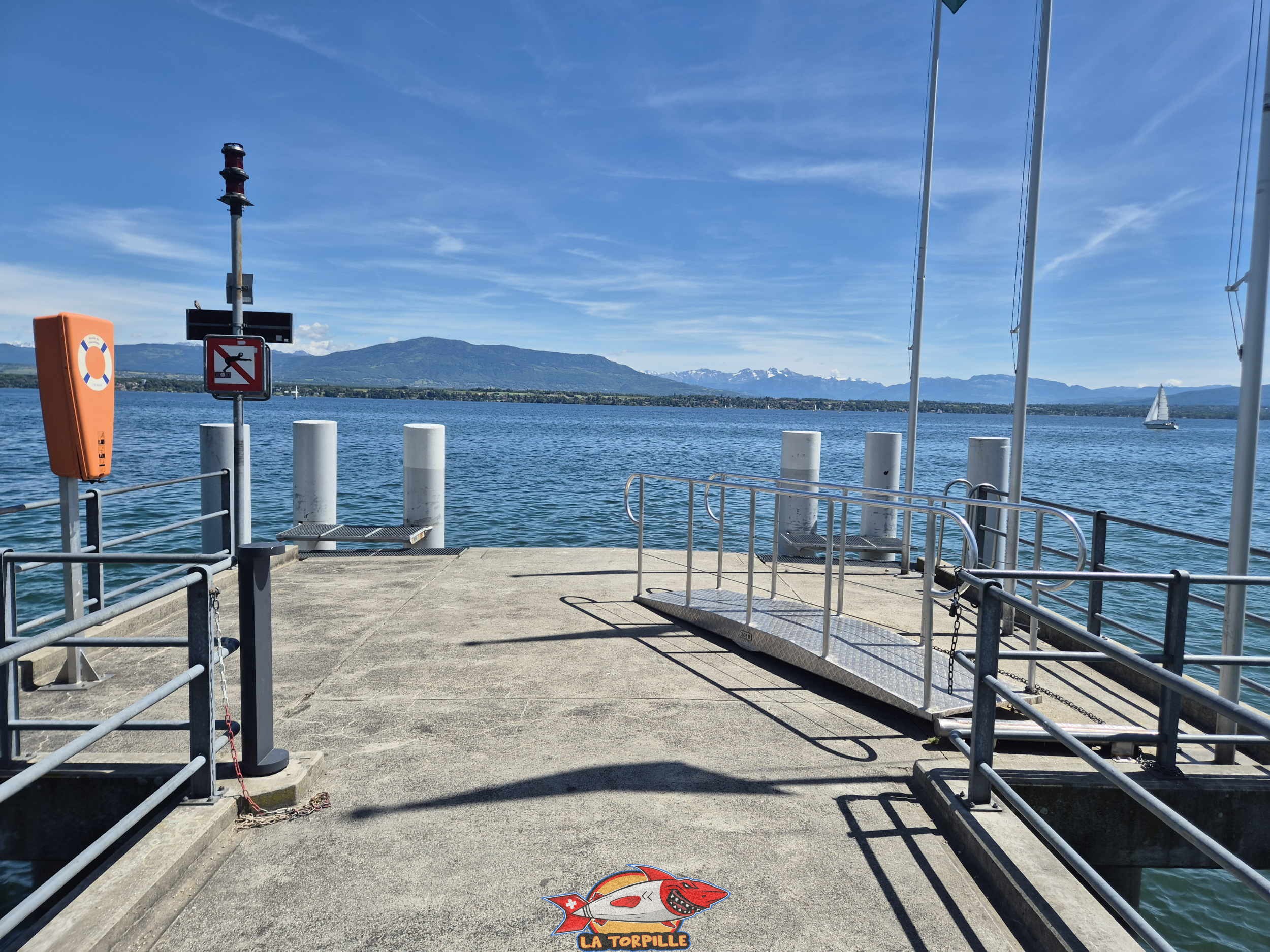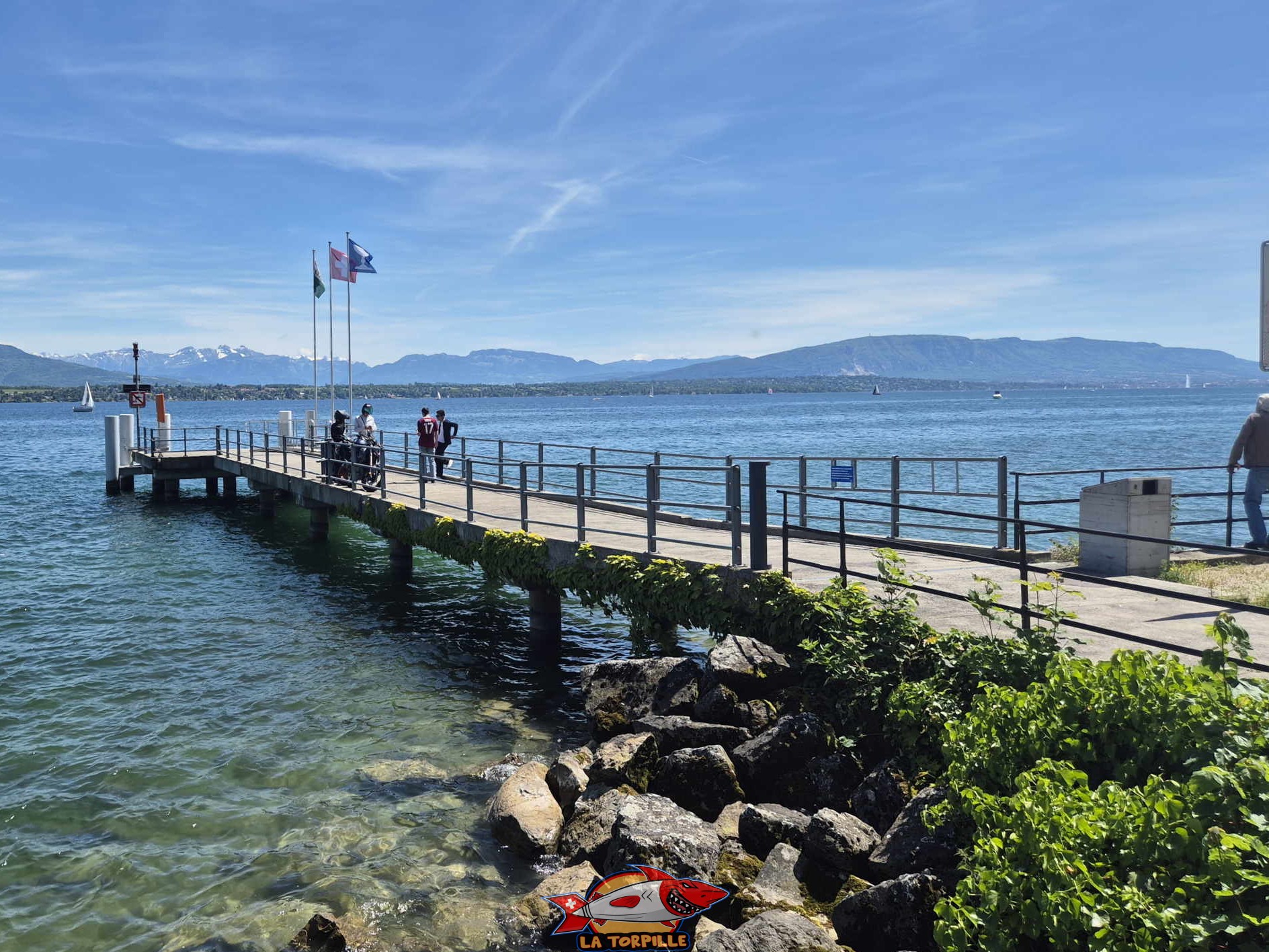 Le débarcadère de Coppet avec, sur la droite, le Salève.