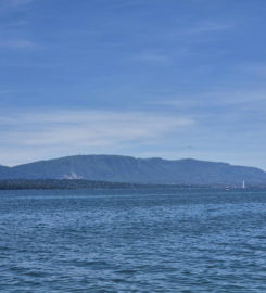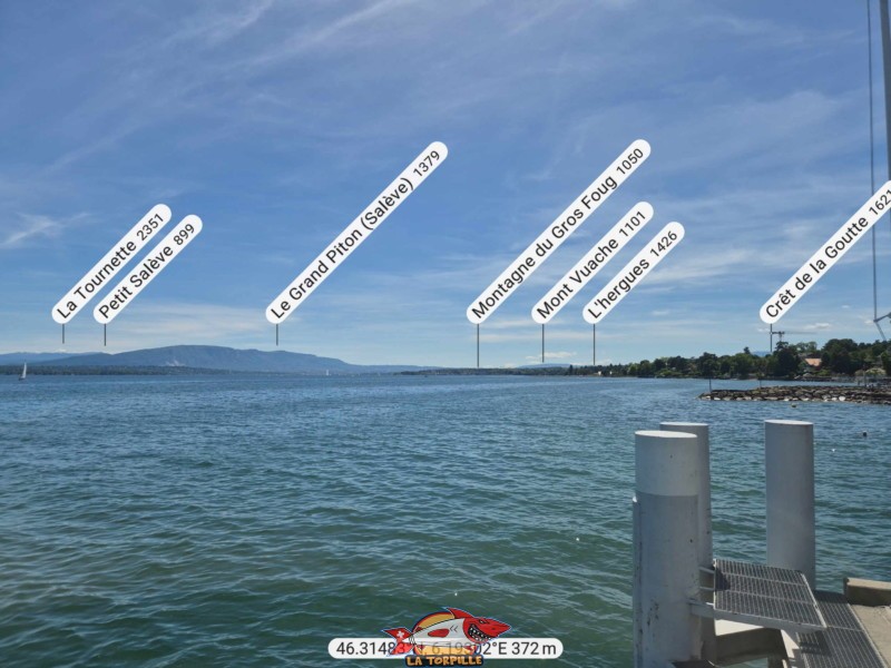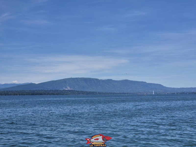 La vue direction Sud depuis le débarcadère de Coppet. Le Salève.