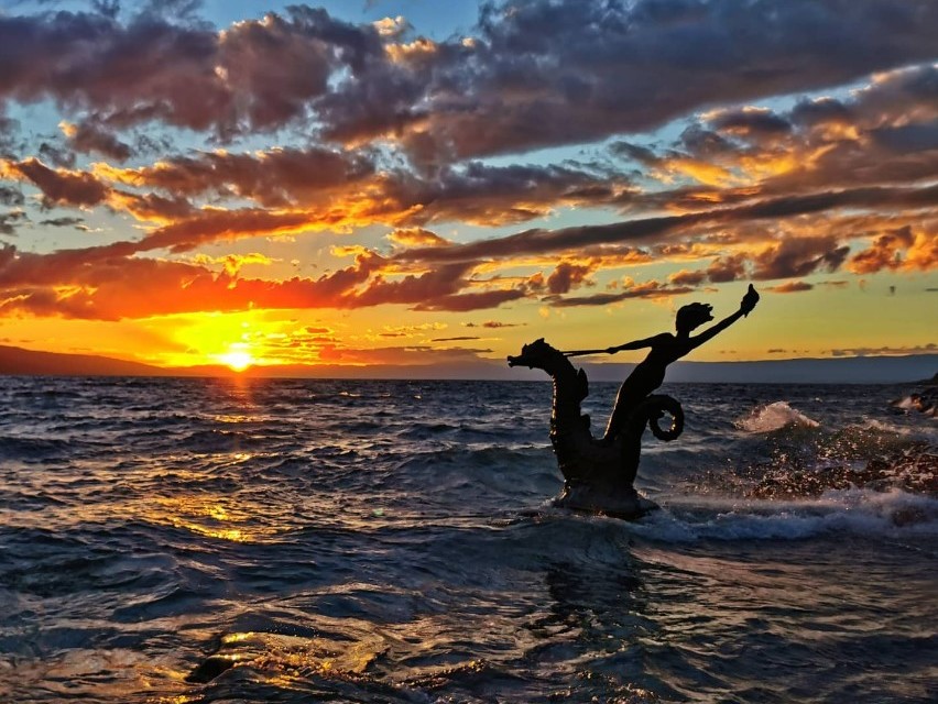 La vue sur les Alpes françaises sur la droite et les Alpes valaisannes sur la gauche. Dans la lignée de la personne, le village de Saint-Gingolph de l’autre côté du Léman.