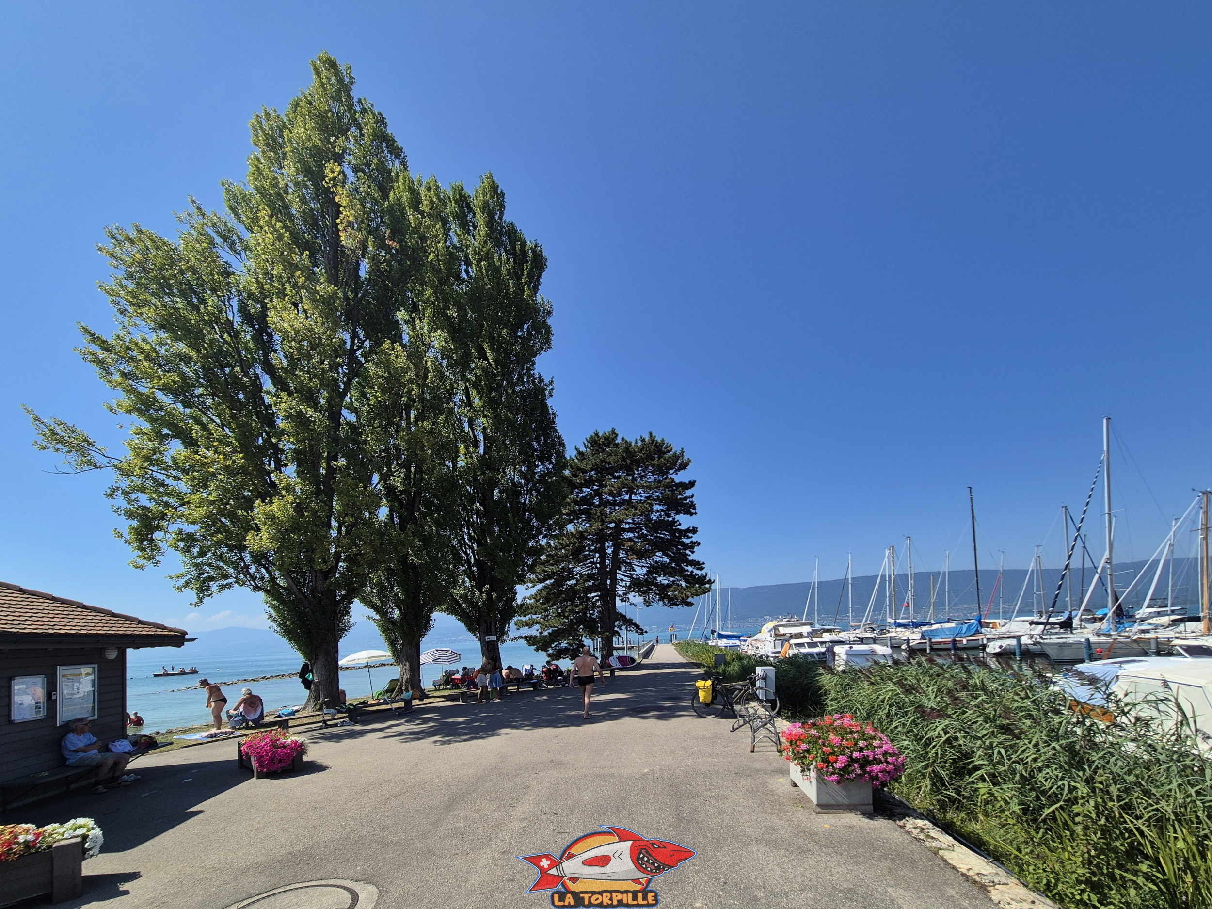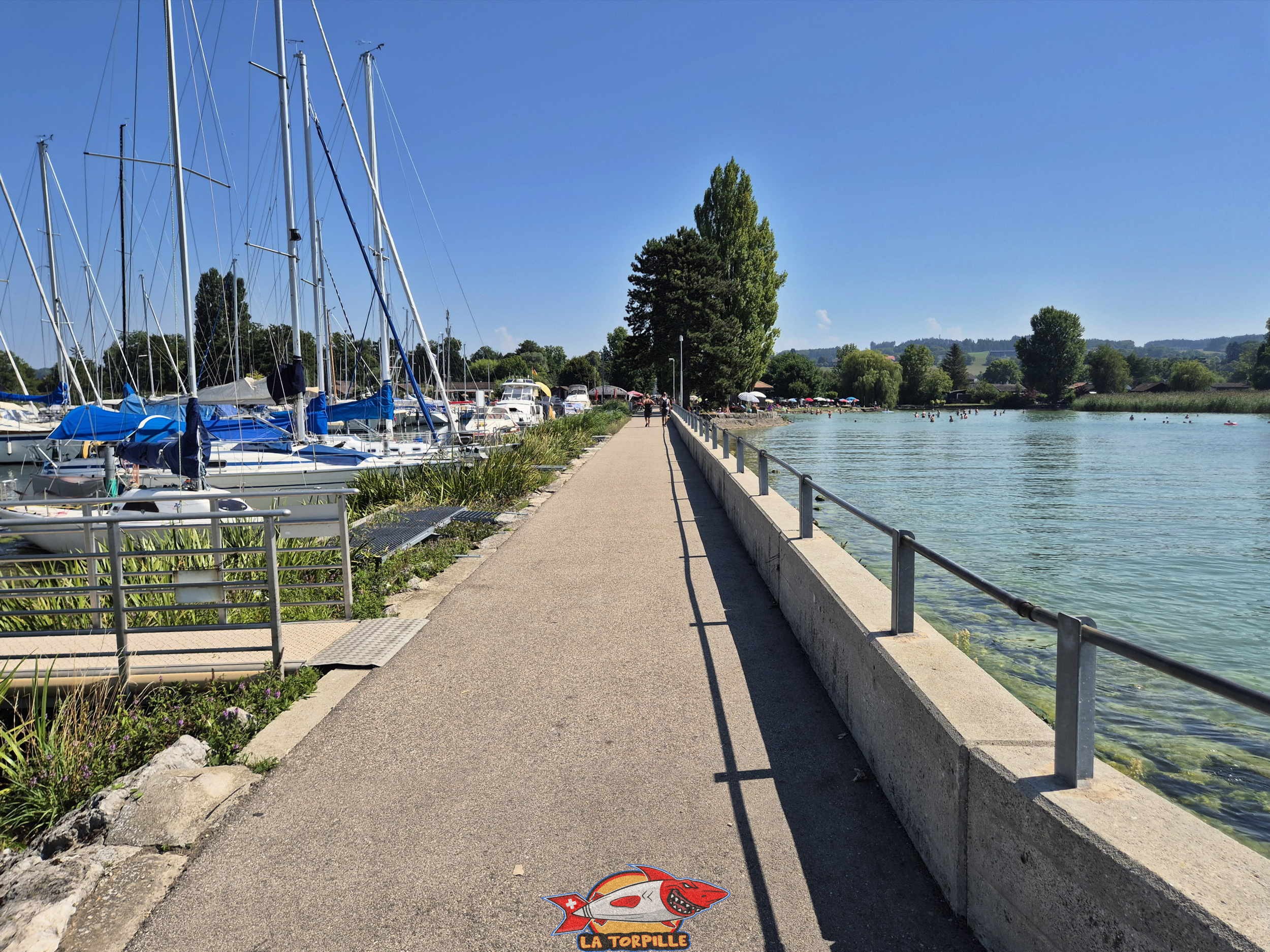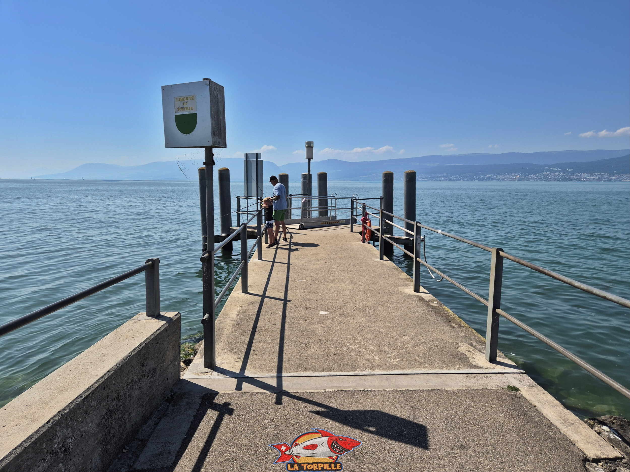 La digue et le débarcadère de Cudrefin depuis la plage.