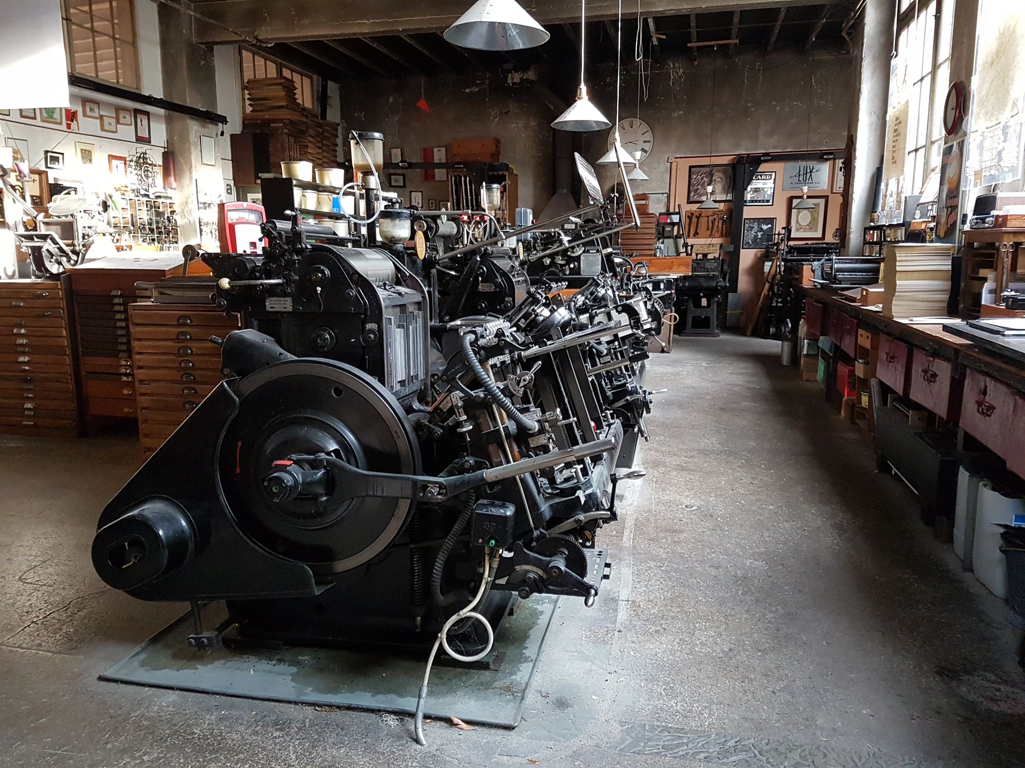 Lors de la visite gratuite, on est plongé dans un atelier typographique authentique où des presses historiques, des milliers de caractères en plomb et en bois, ainsi qu’un parc de machines impressionnant racontent l’histoire de l’imprimerie artisanale. Ce n’est pas un musée figé : tout fonctionne encore, et des impressions se font réellement selon les techniques d’autrefois.