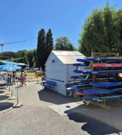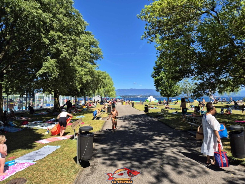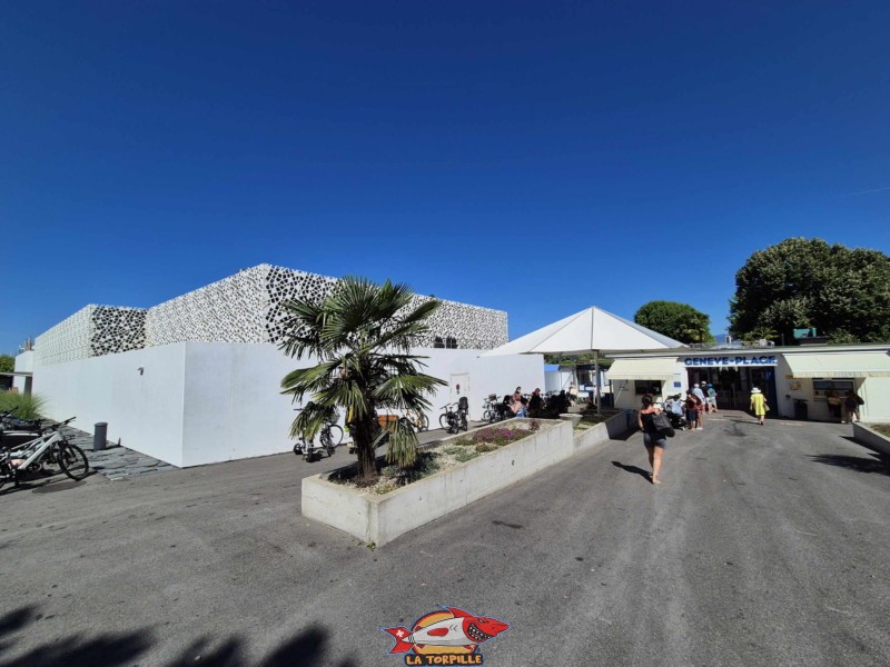 L’entrée de Genève-Plage, et, sur la gauche, le Bain Bleu.