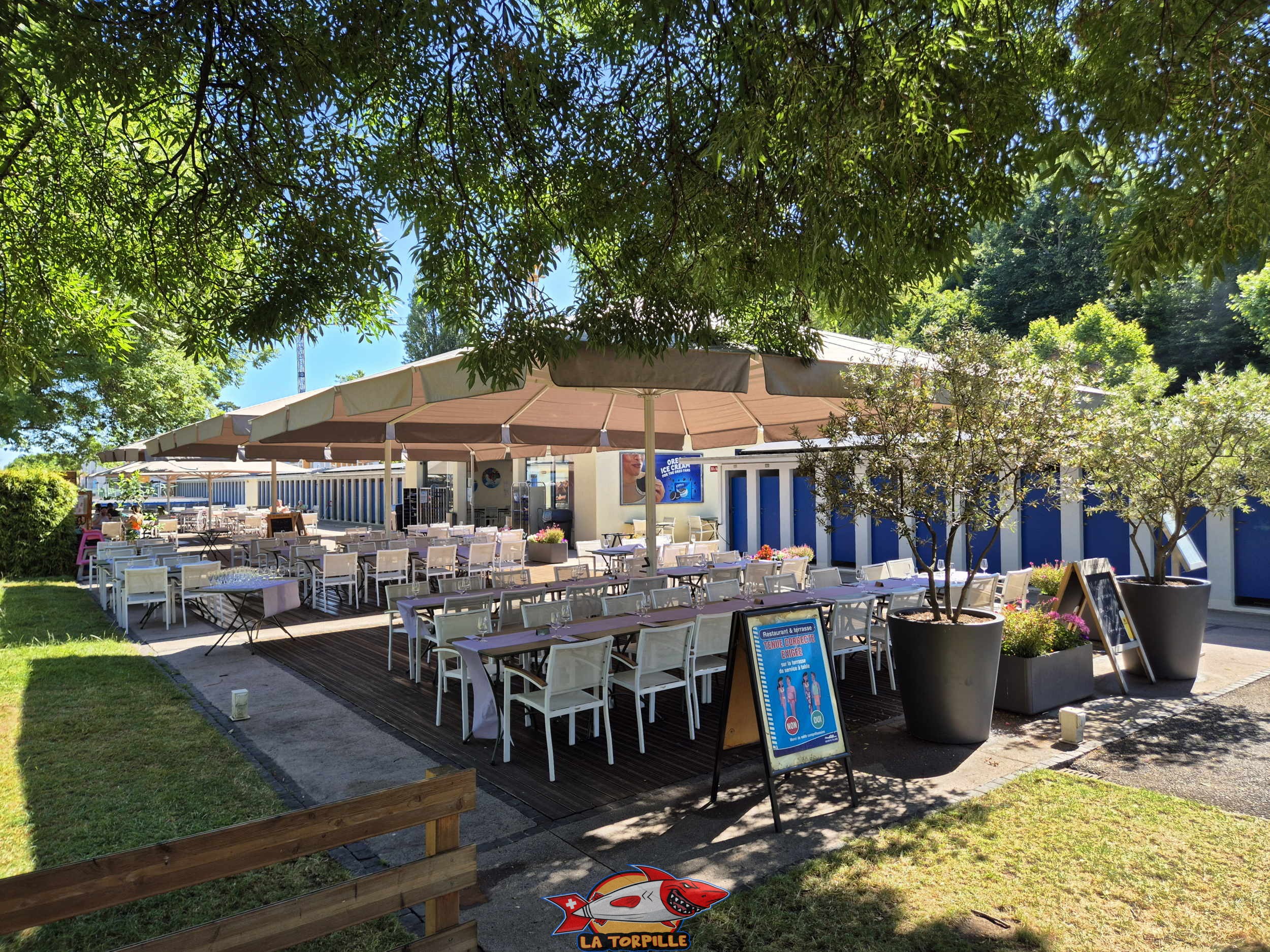 Restaurant. Genève-Plage, Cologny. Lac Léman.