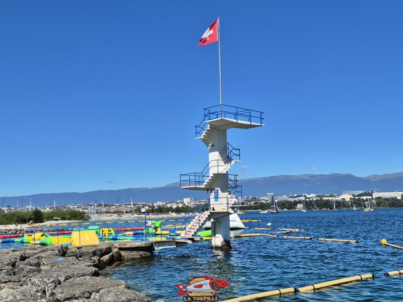 Genève-Plage, Cologny. Lac Léman. Le sommet du plongeoir.