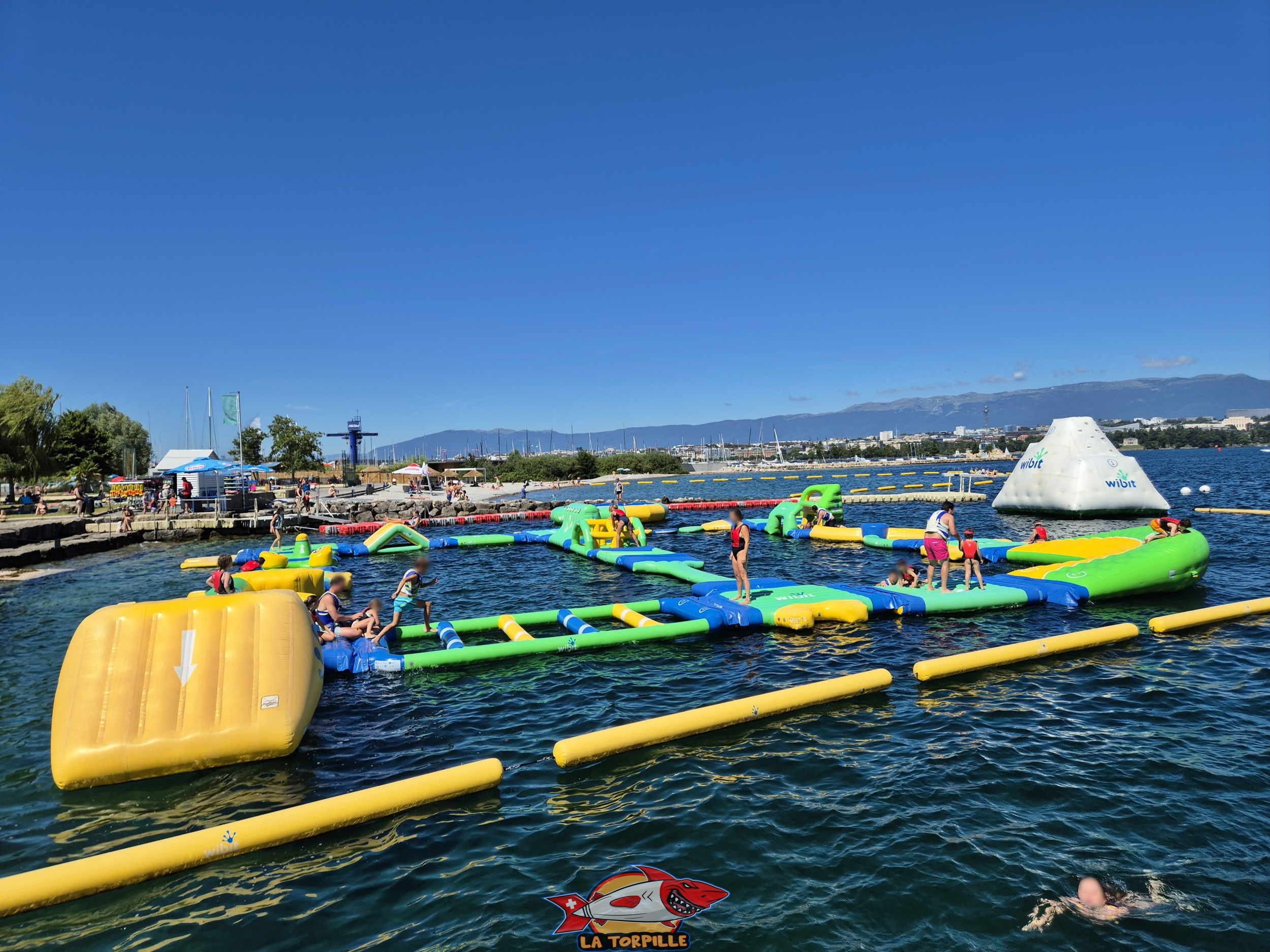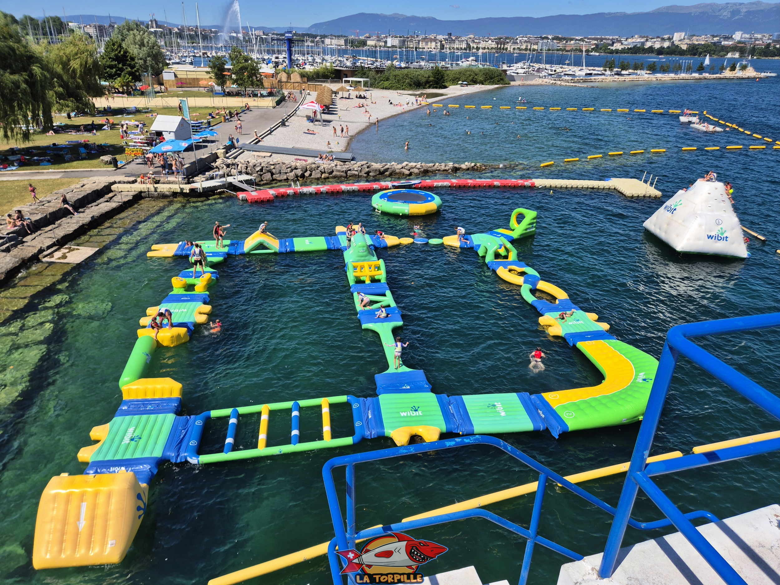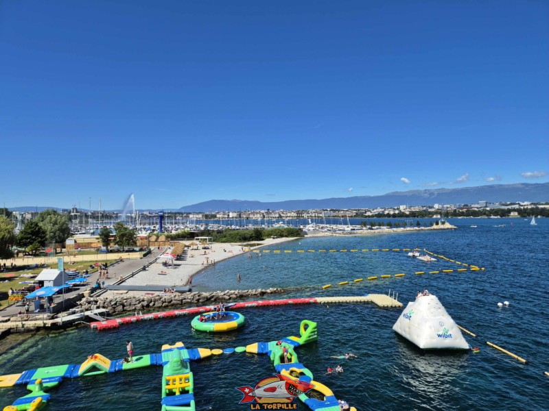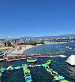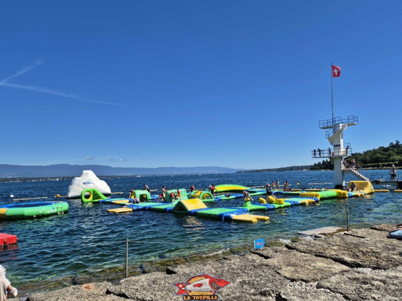 Structure gonflable. Genève-Plage, Cologny. Lac Léman.