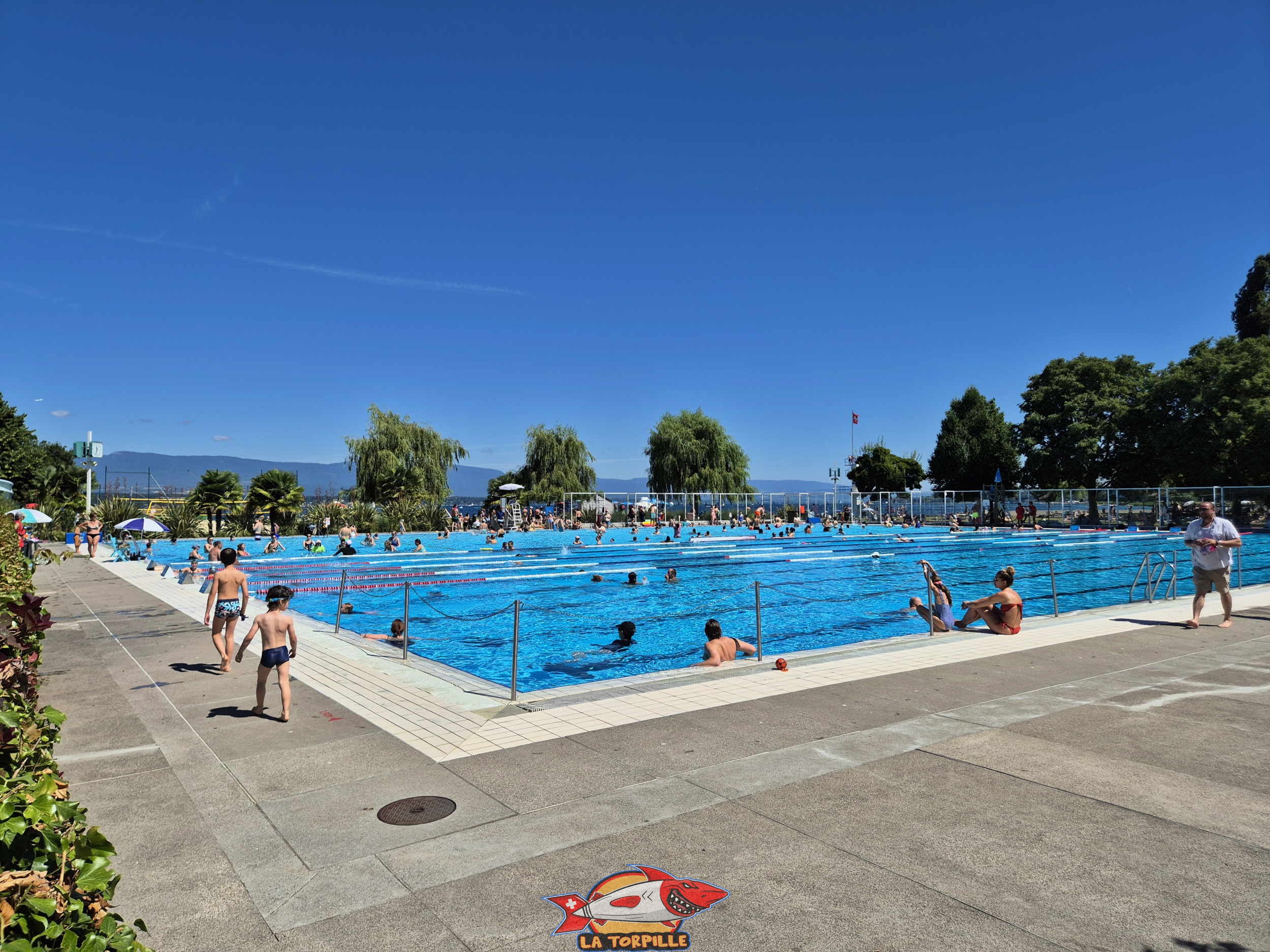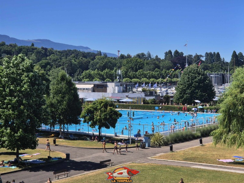 Piscine, Grand bassin. Genève-Plage, Cologny. Lac Léman.