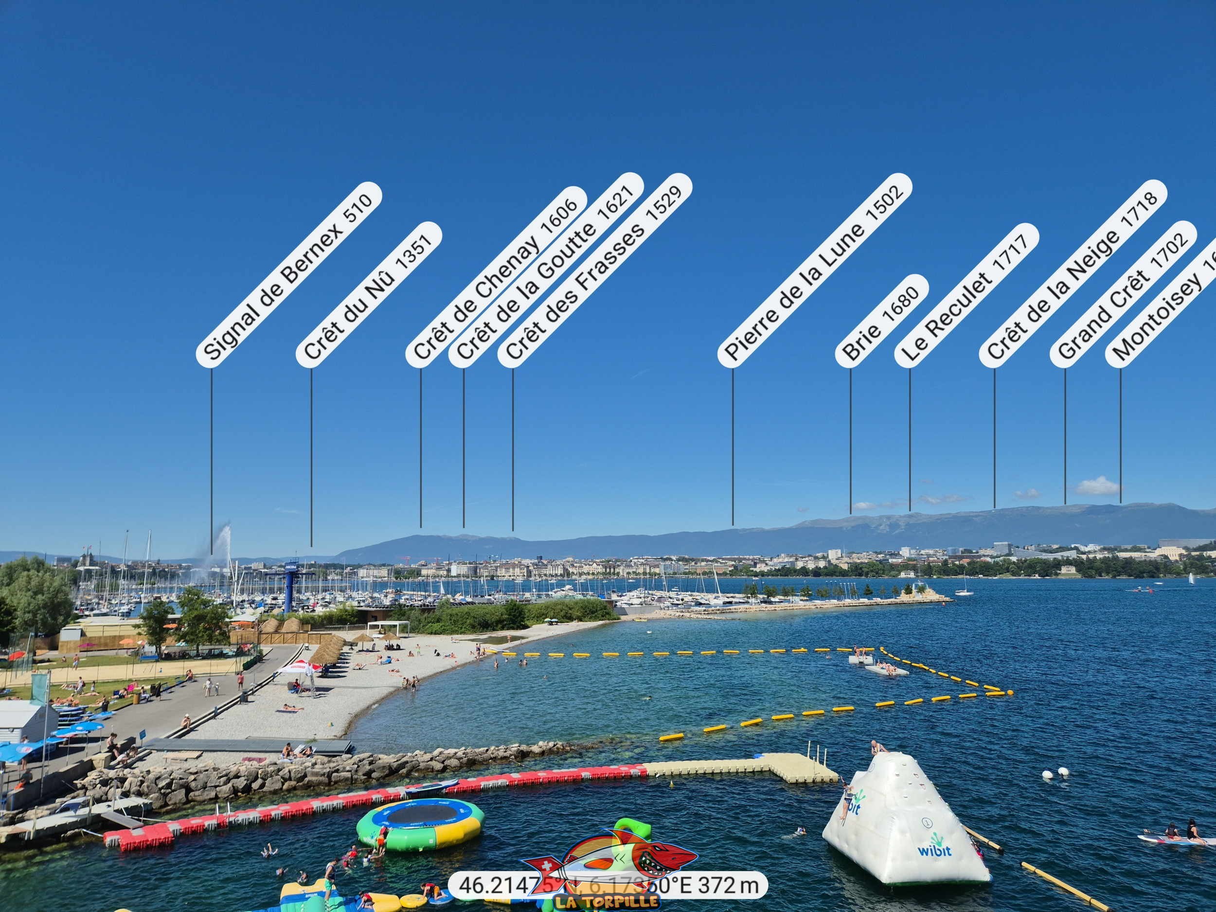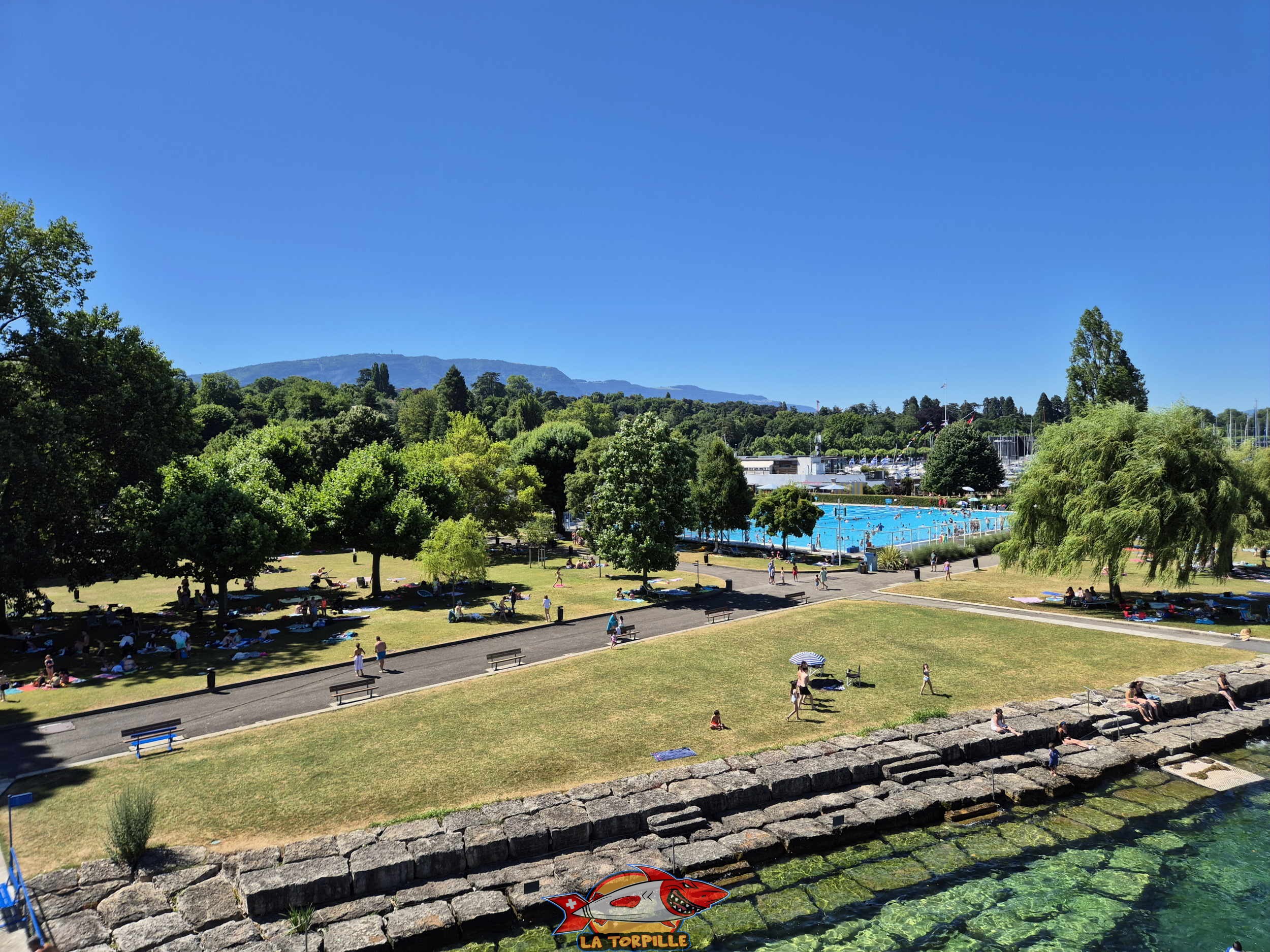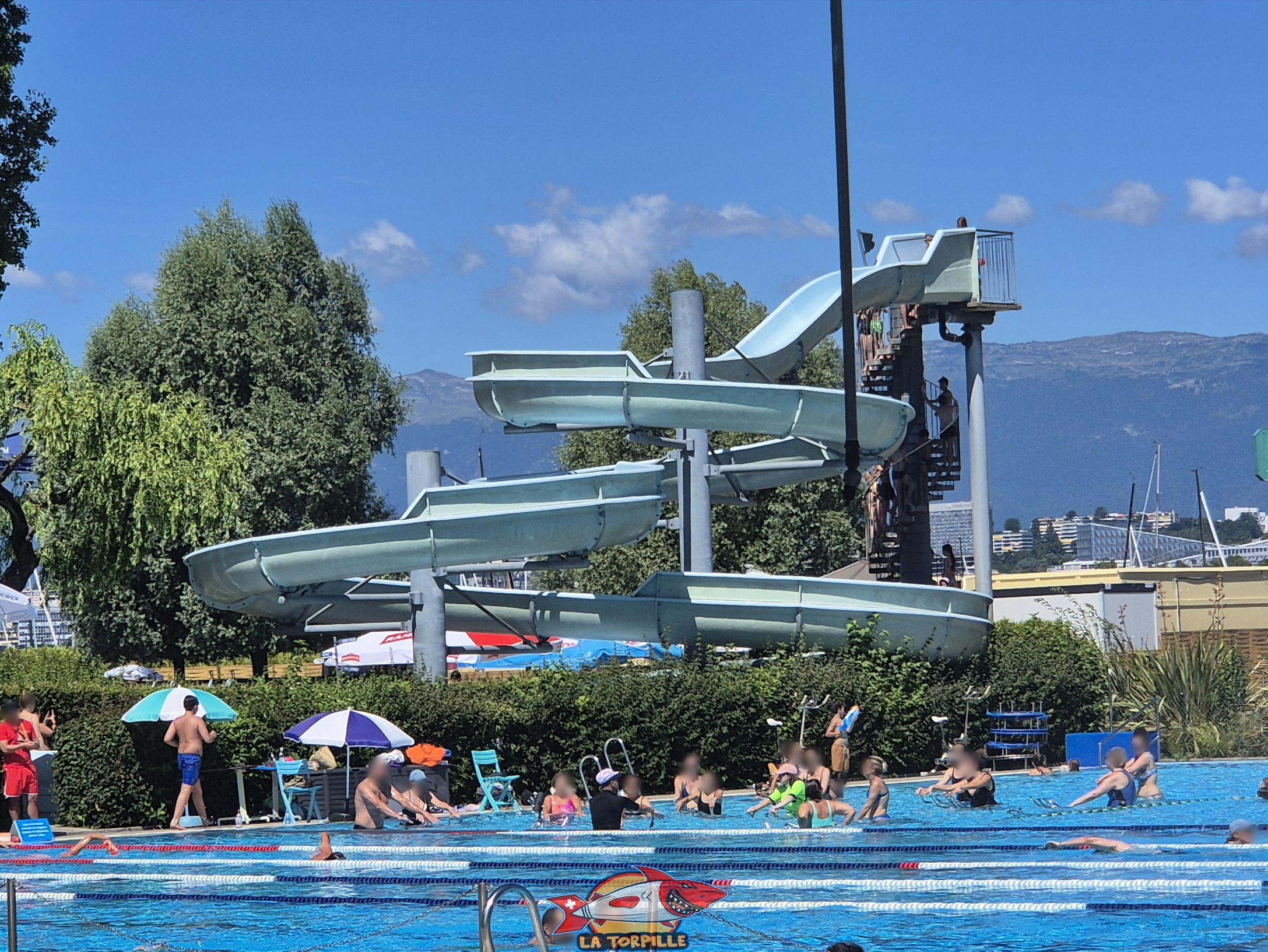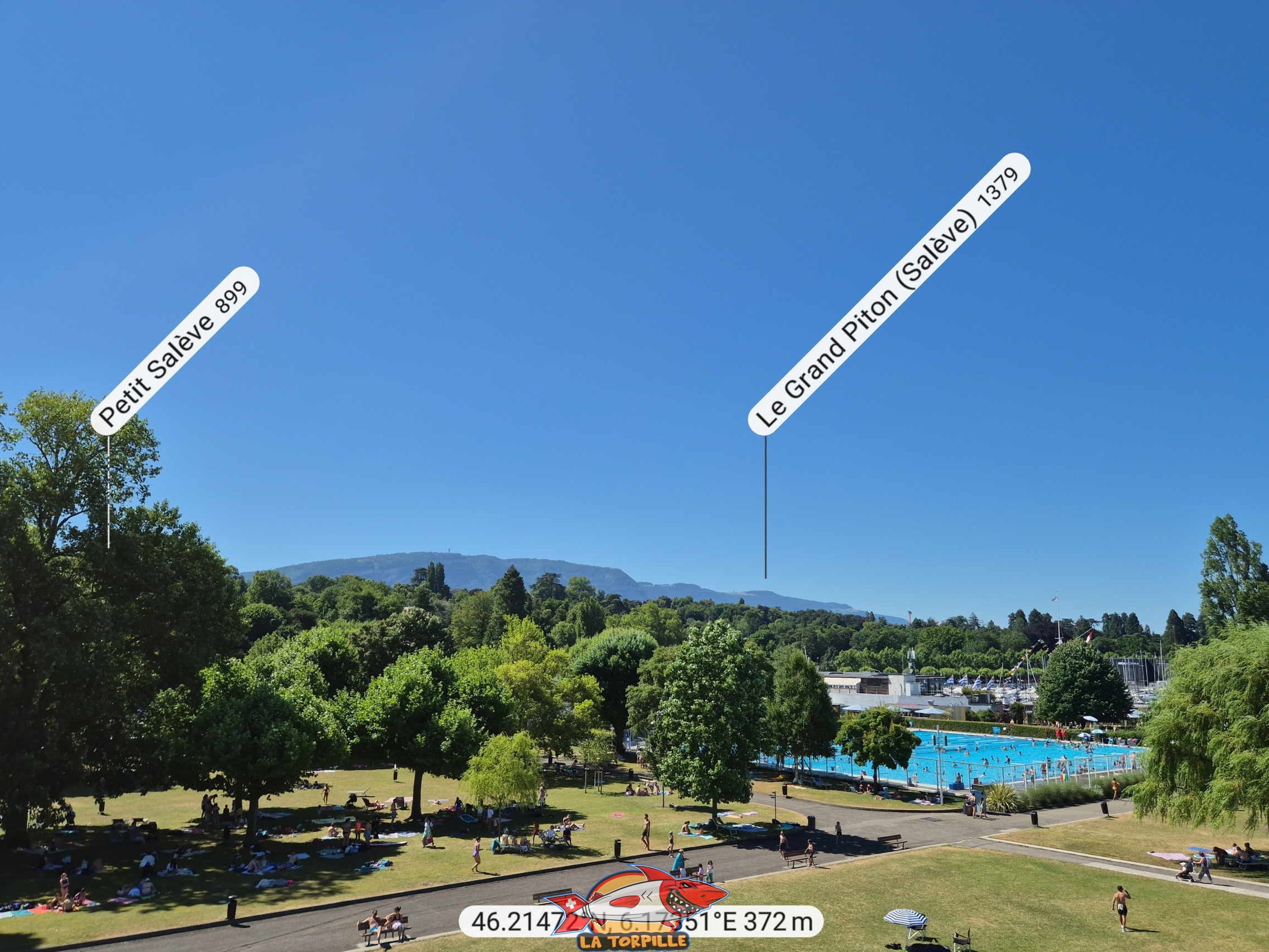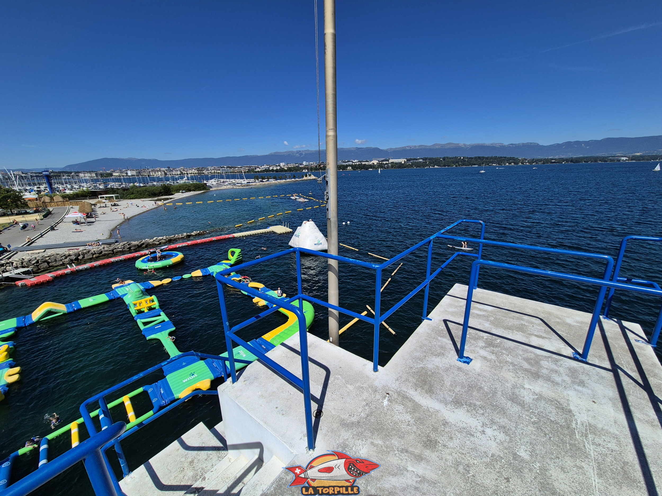 Les panoramas depuis le sommet du plongeoir de la piscine de Genève-Plage.
