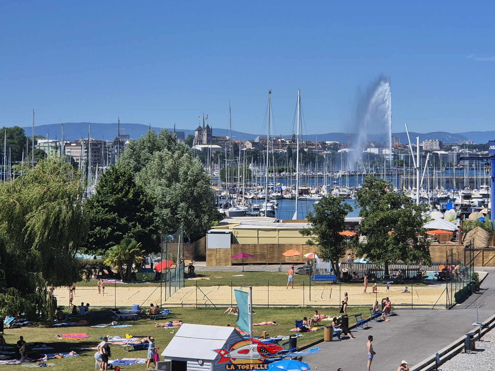 Terrains de Volley. Genève-Plage, Cologny. Lac Léman.