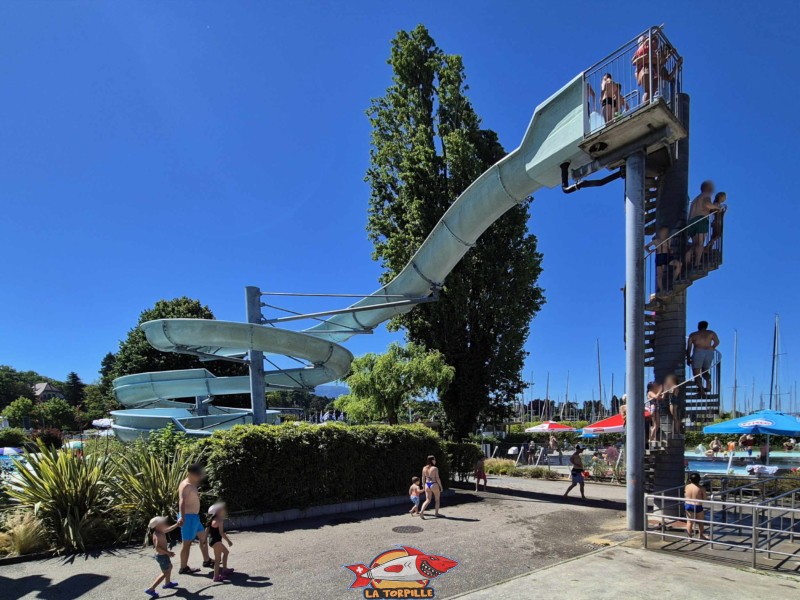 Toboggan. Genève-Plage, Cologny. Lac Léman.