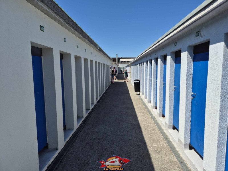 Les vestiaires, avec, en arrière-plan, le bain-bleu.