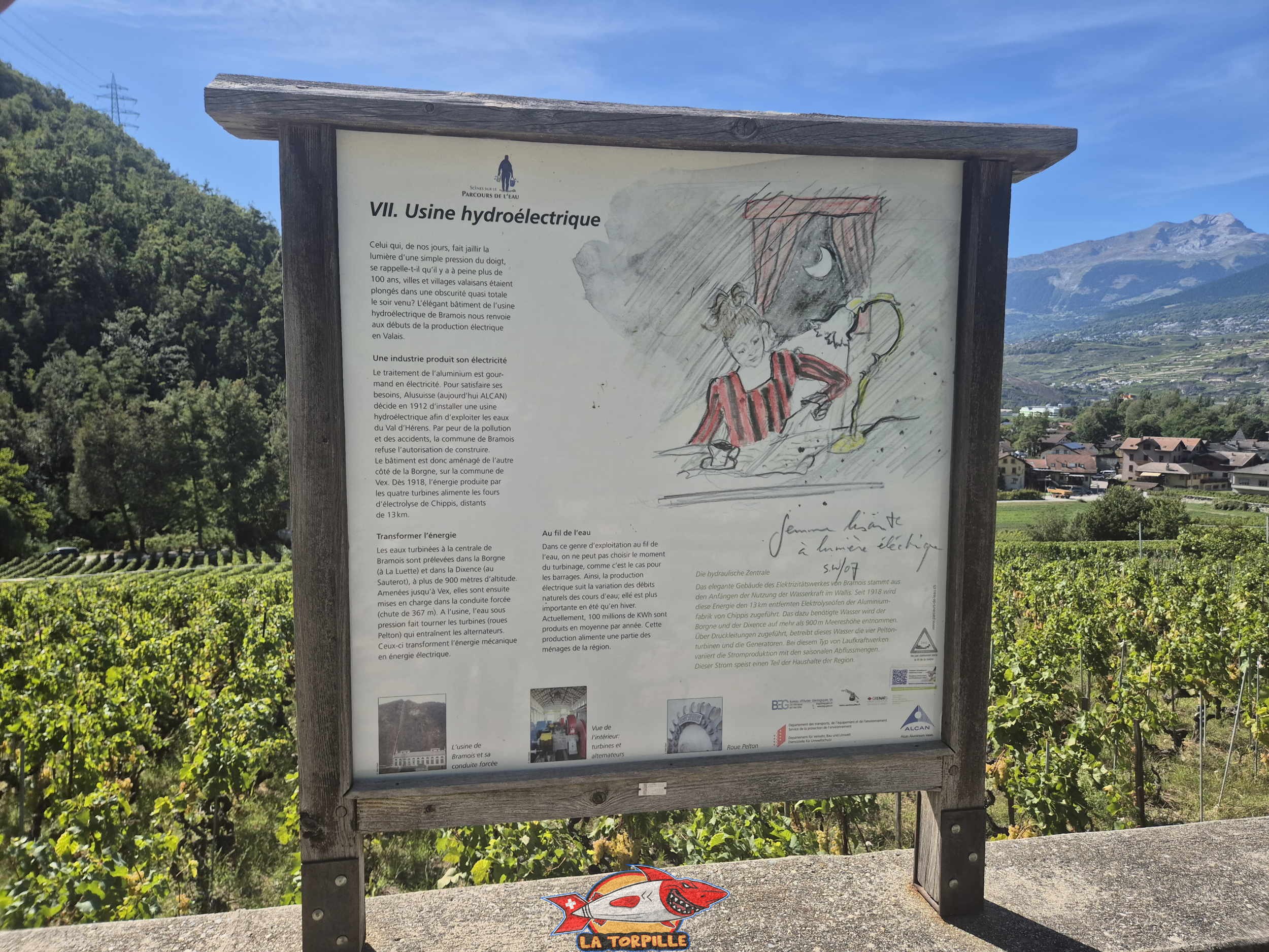 Un panneau d’information sur l’usine électrique de Bramois.