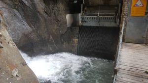 Le premier pont permet de faire passer de l’eau sous les grilles métalliques pour l’amener au bassin d’accumulation des Marécottes.