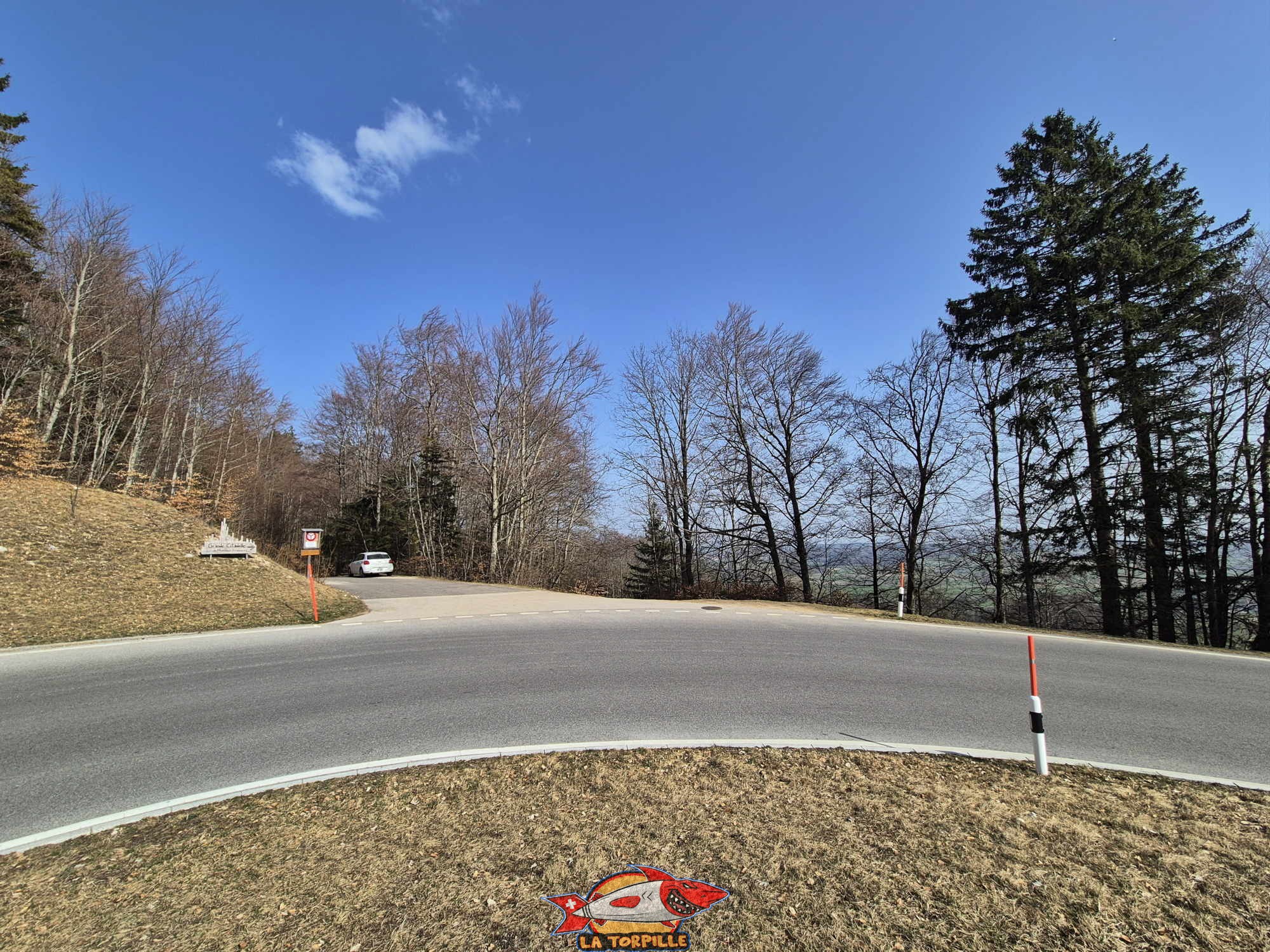 L’épingle de la route du Marchairuz près de laquelle se trouvent les places de parking.